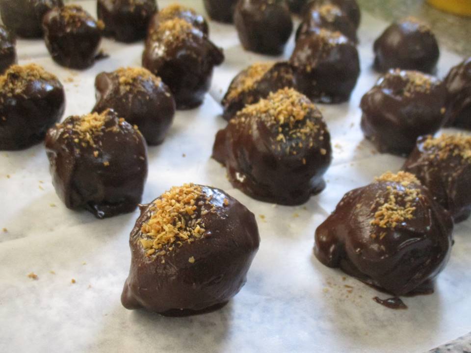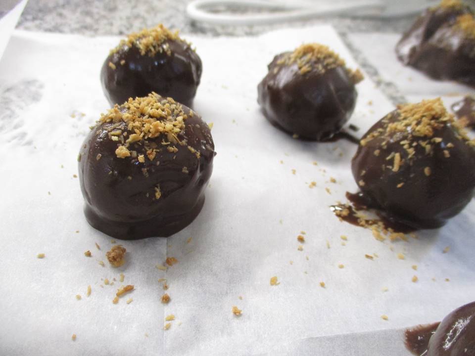מוציאים את הכדורים מהקפאה וטובלים אותם בציפוי,