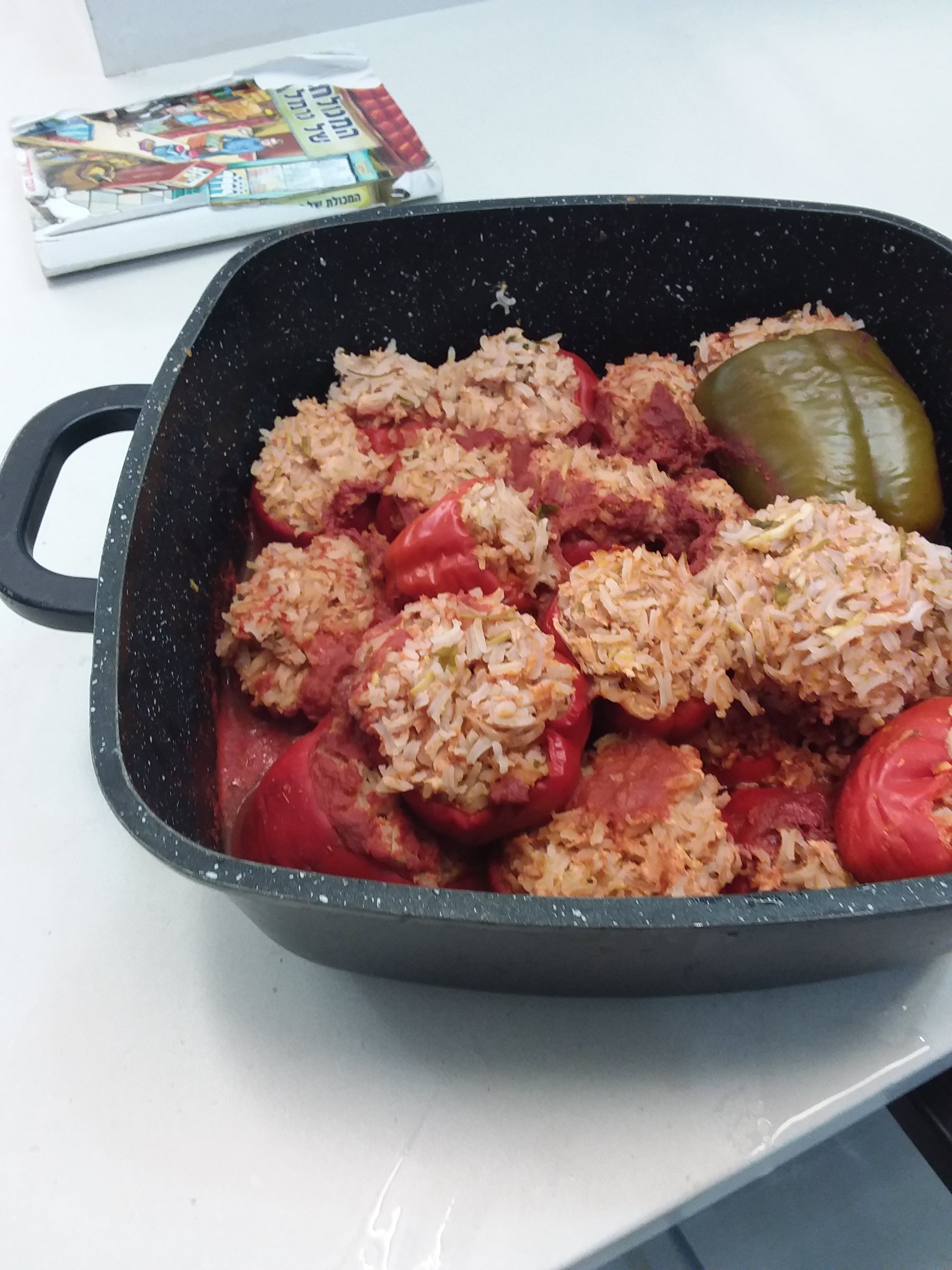 (אין צורך בכל האורז שבישלנו. מצד שני, כוס אורז אחת לפני בישול לא מספיקה. לכן תמיד מבשלת שתי כוסות ומורידה שתי כוסות מהאורז המבושל). אין לי מידות מדויקות, אבל התערובת של הבשר והאורז צריכה להיות מאוזנת. לא יותר מדי בשר. לא יותר מדי אורז.