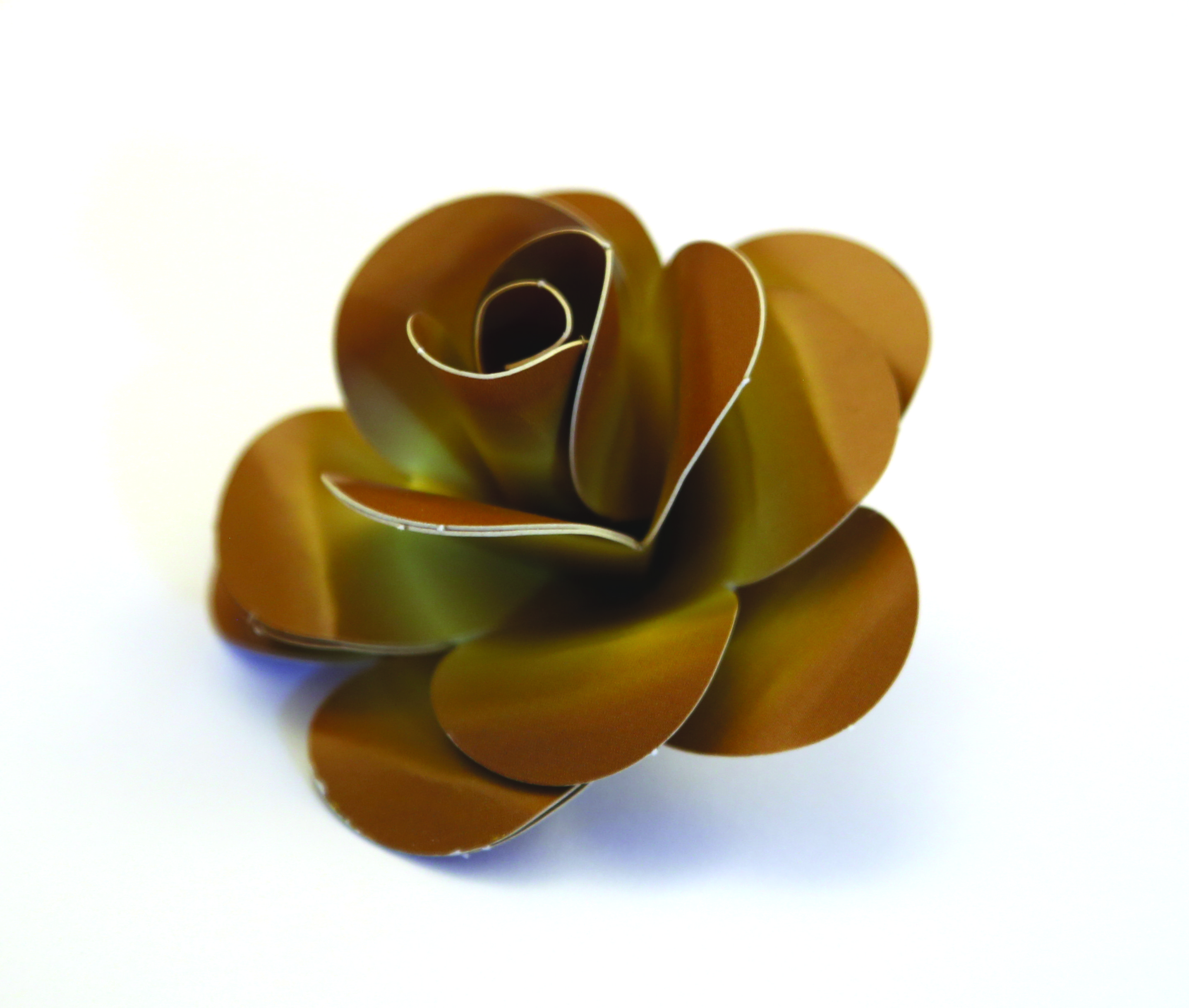 שילוב של פרספקס שחור מודפס בלבן עם פרחים תלת מימד מנייר.