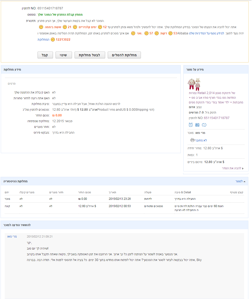 הזמנתי לפני חודשיים בגד לתינוקת וזה עדיין לא הגיע