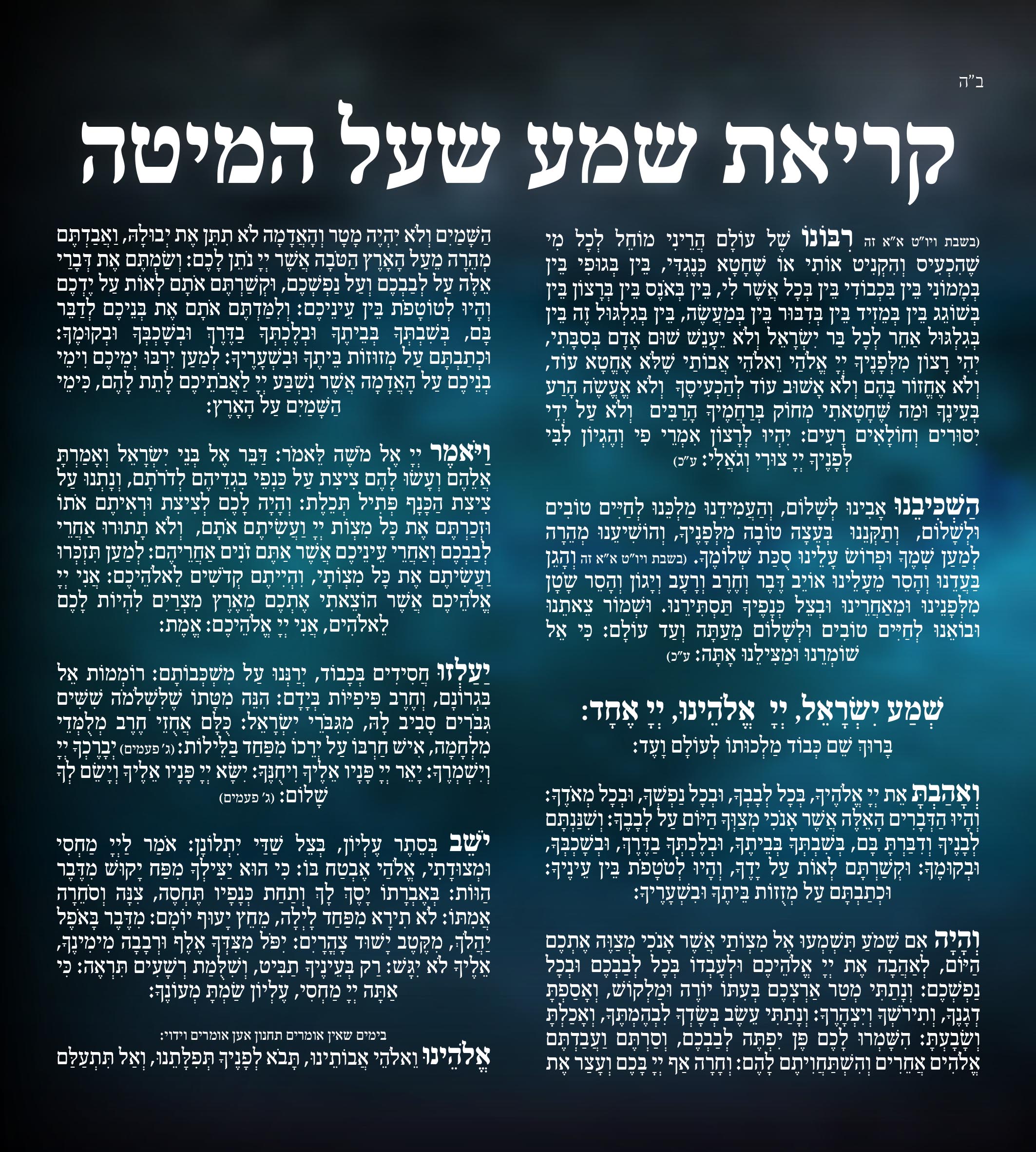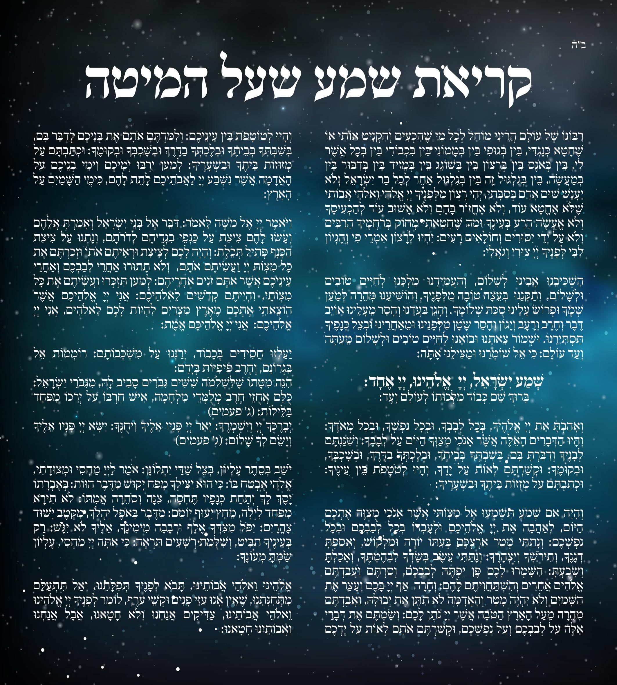 אולי למעלה ליד הכותרת (קריאת שמע שעל המיטה) אפשר להוסיף כמה כוכבים וירח... תנסי.