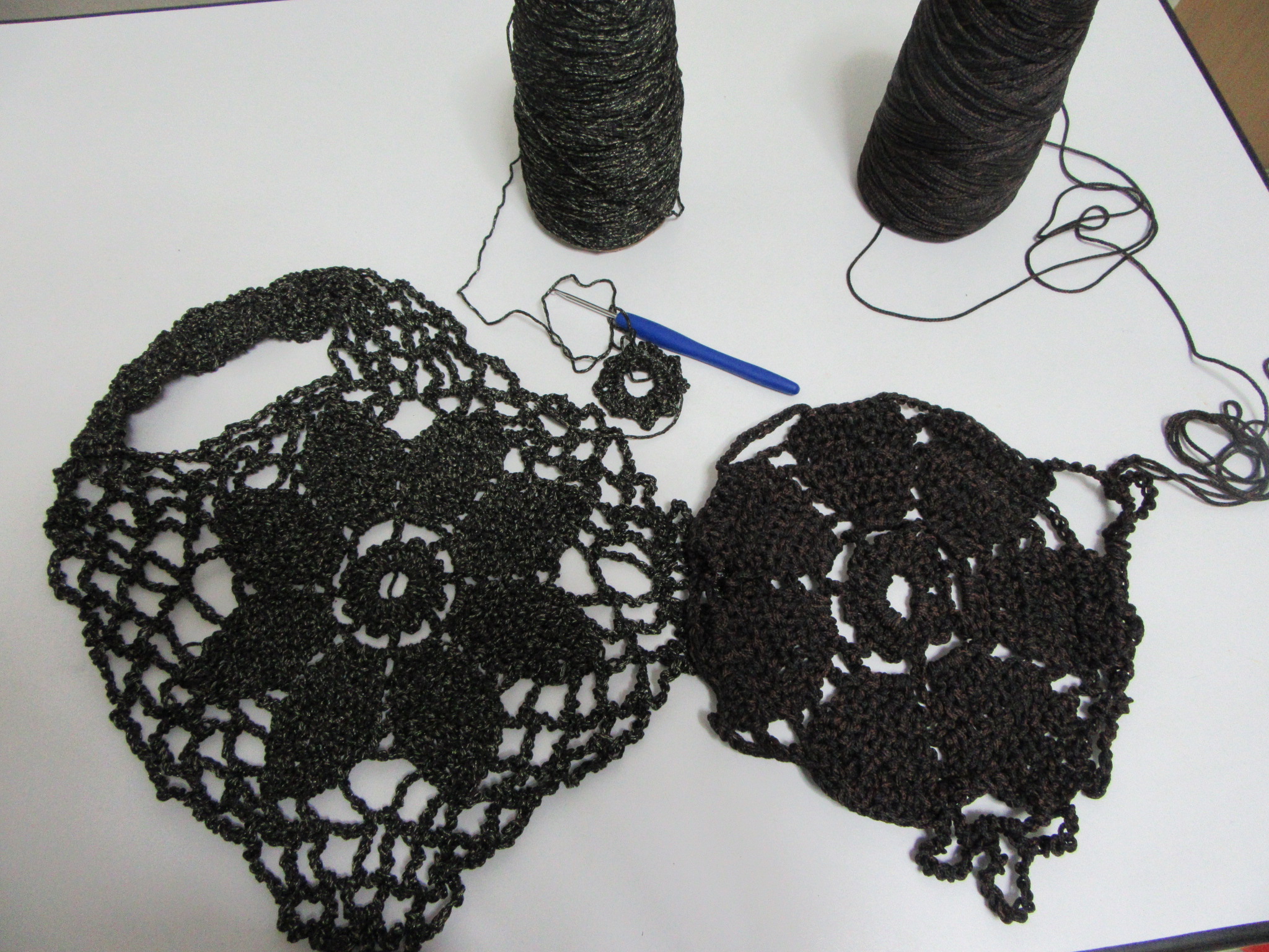 נשארתי עם חוטים וכדי שלא ישכבו לי סתם, התחלתי להשתמש בהם לדברים אחרים, בעיקר לתיקים. וזה אחד מהם.