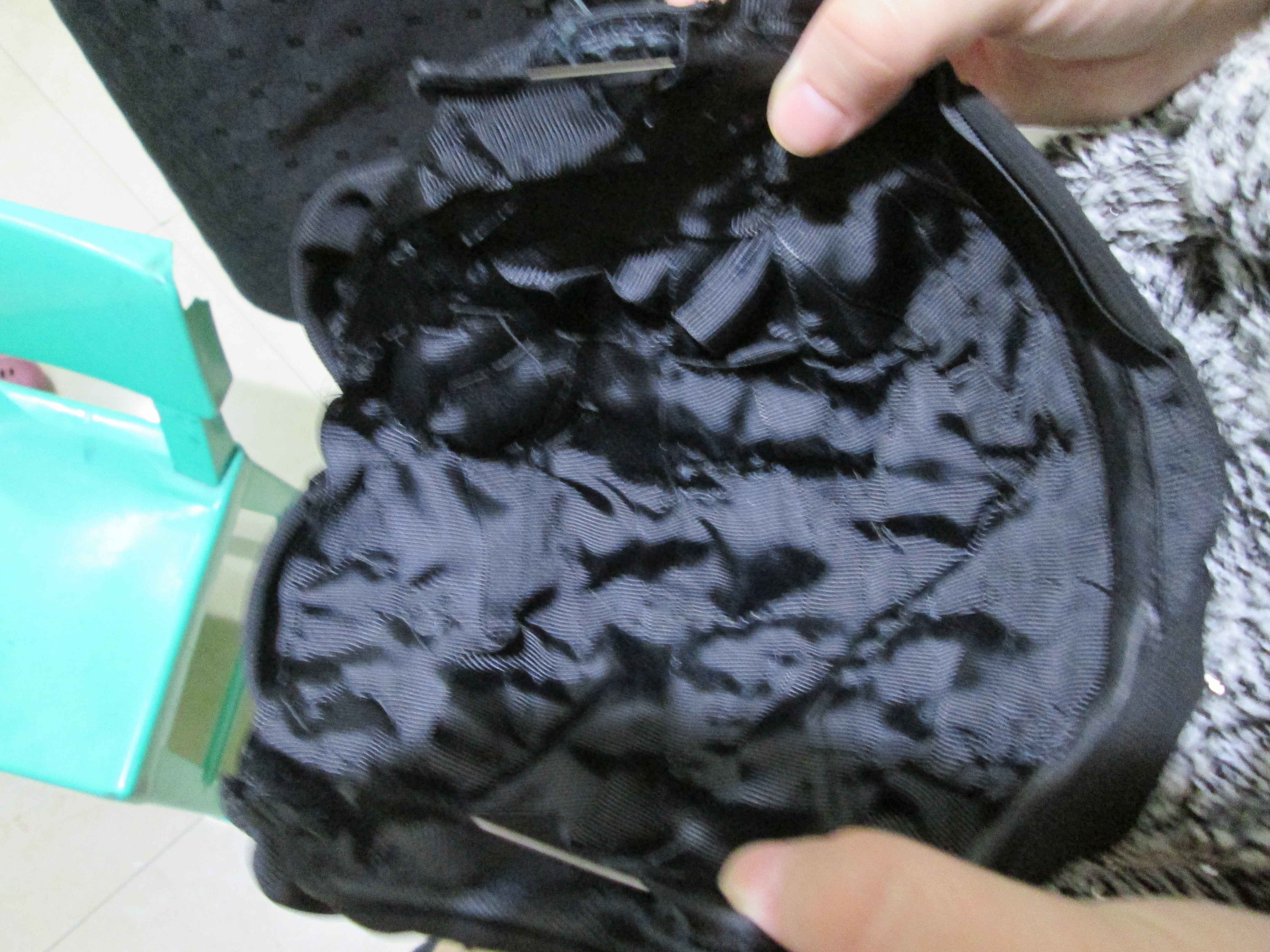 גוזרים את השוליים עד למכפלת הפנימית שיש לו. ואז גוזרים אותו לחצי ברוחב, וקיבלת שני בסיסים לבנדים. במכפלת מכניסים את הקשת ותופרים ידנית.