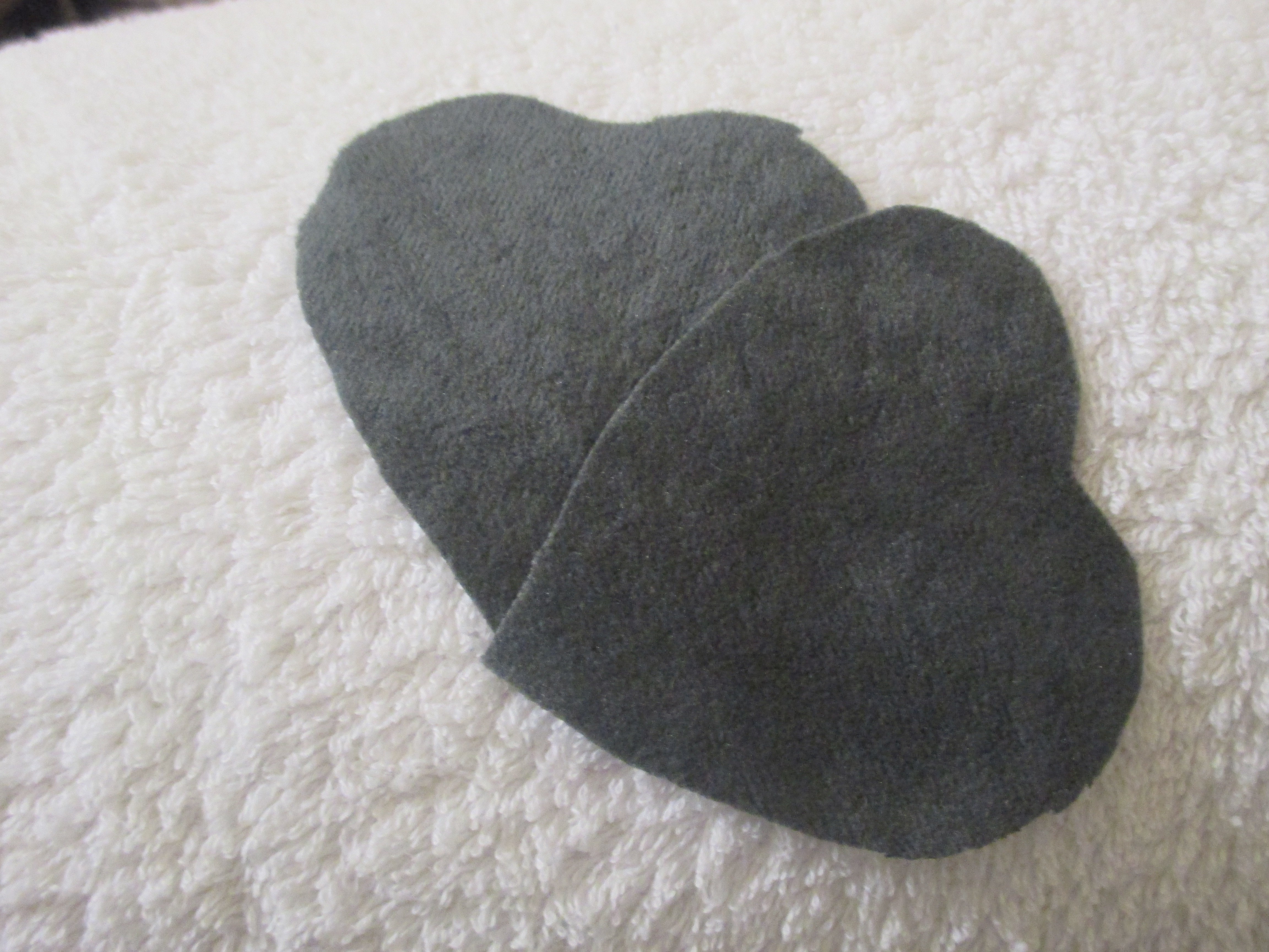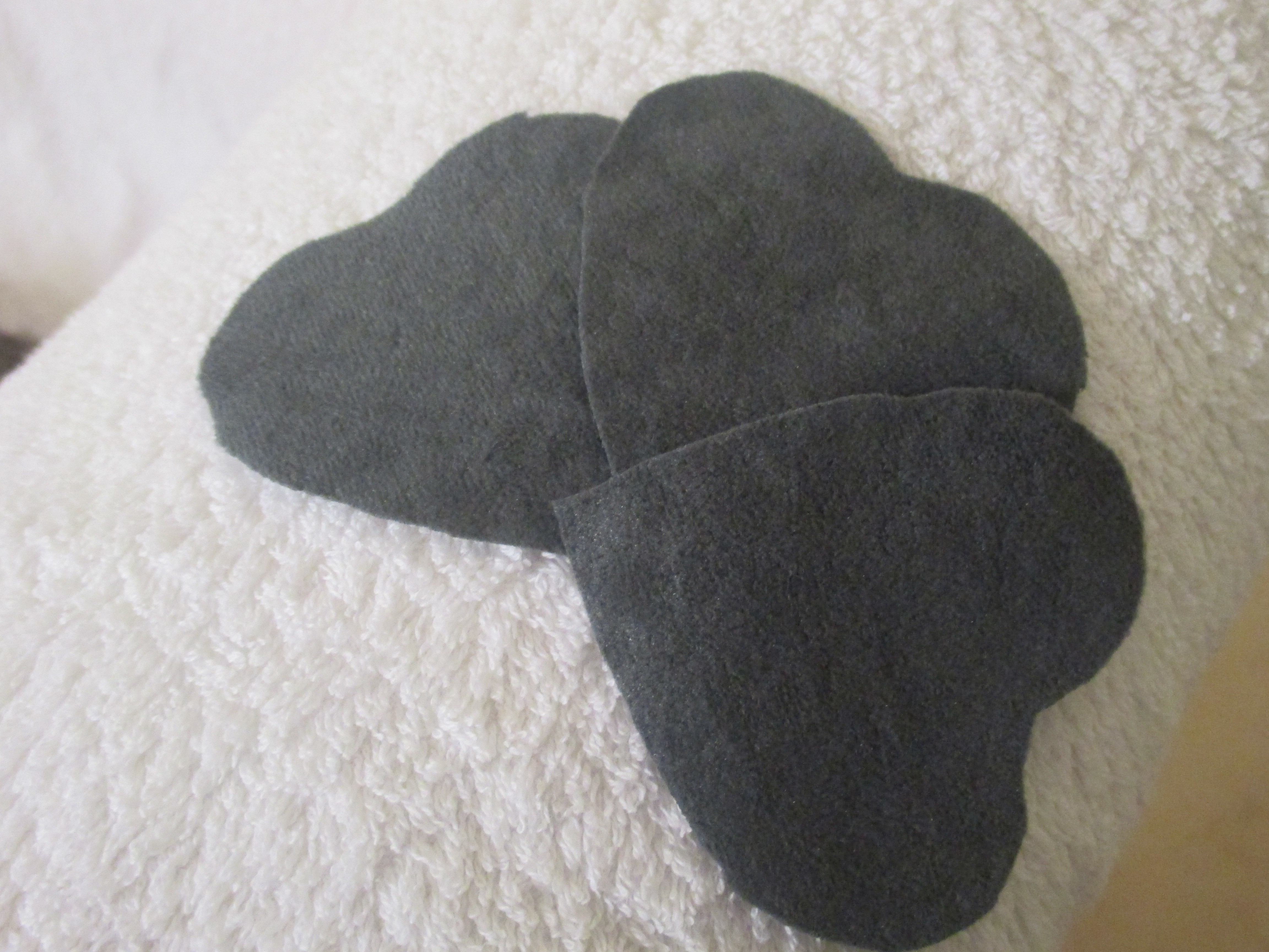 חותכים בד בצורת עלה כותרת הדומה ללב. מכינים חמש לבבות בגודל זהה.