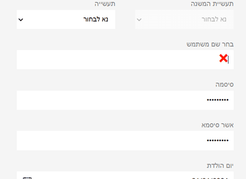 אני רוצהלהירשם לאתר של מודלים, וכשאני ממלאת את שמי, הוא אומר שהוא לא טוב. רק בשם משתמש הוא כותב את זה. ברגיל אין בעיה.