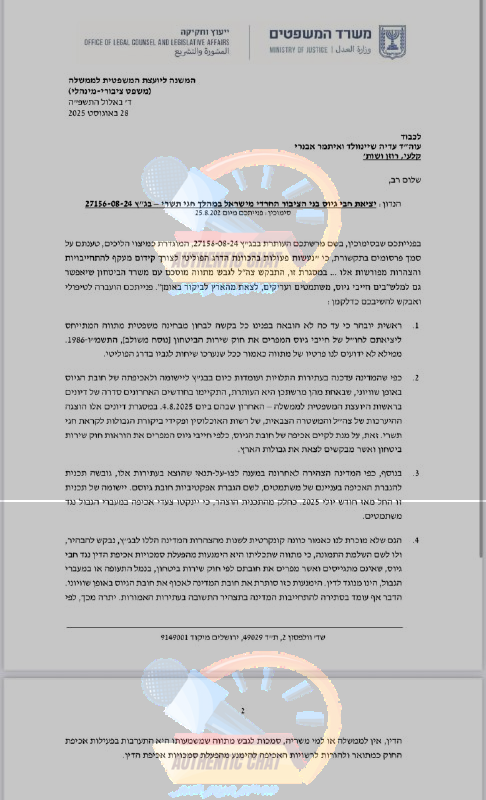 - הודעה מטעם היועצת המשפטית לממשלה היועצת המשפטית לממשלה: יש לבצע אכיפה נגד חייבים גיוס המבקשים לצאת לאומן.