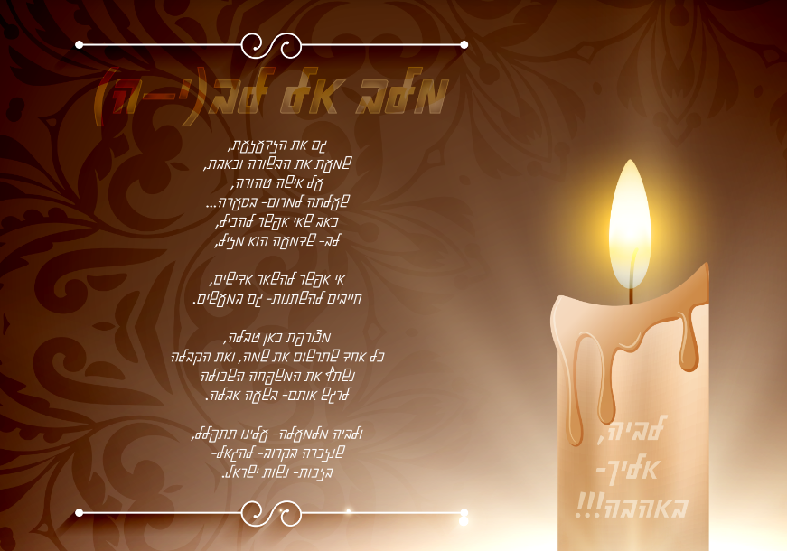 • הכוונה לזכרה: כל תוספת כוונה וריכוז זו, תהווה נר תמיד של אור לנשמתה הקדושה של