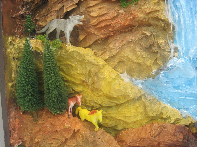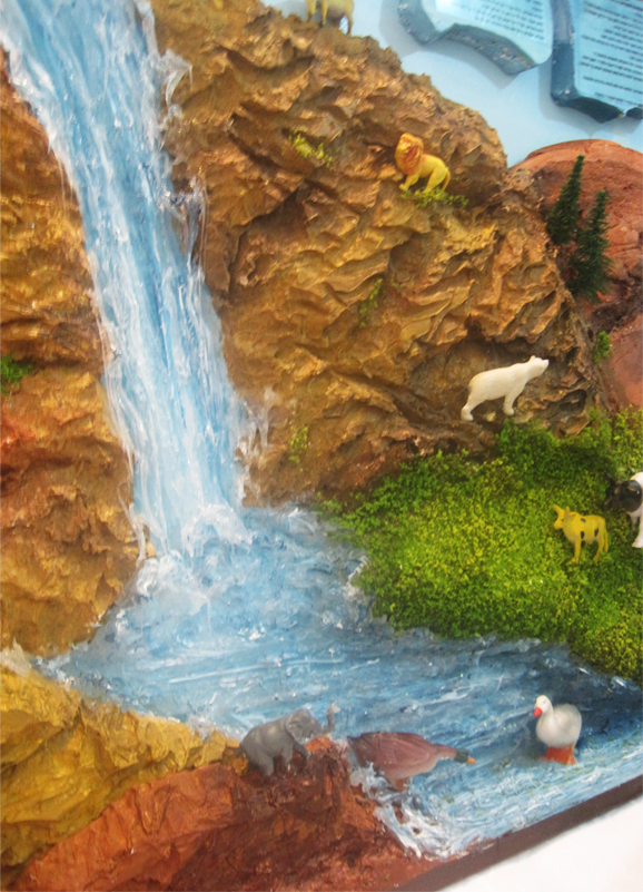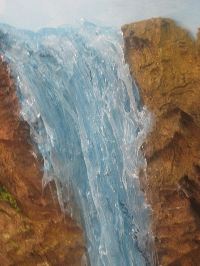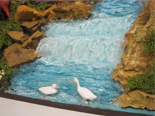 למים - השתמשתי בסיליקון שקוף (מטמבורים למיניהם) שיוצר את תחושת הזרימה.