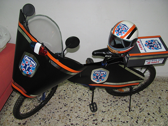 אופניים - אני עשיתי אופנוע של הצלה. אולי זה יעזור לך גם עם הפיצה, תעשי בצבעים לבן אדום.