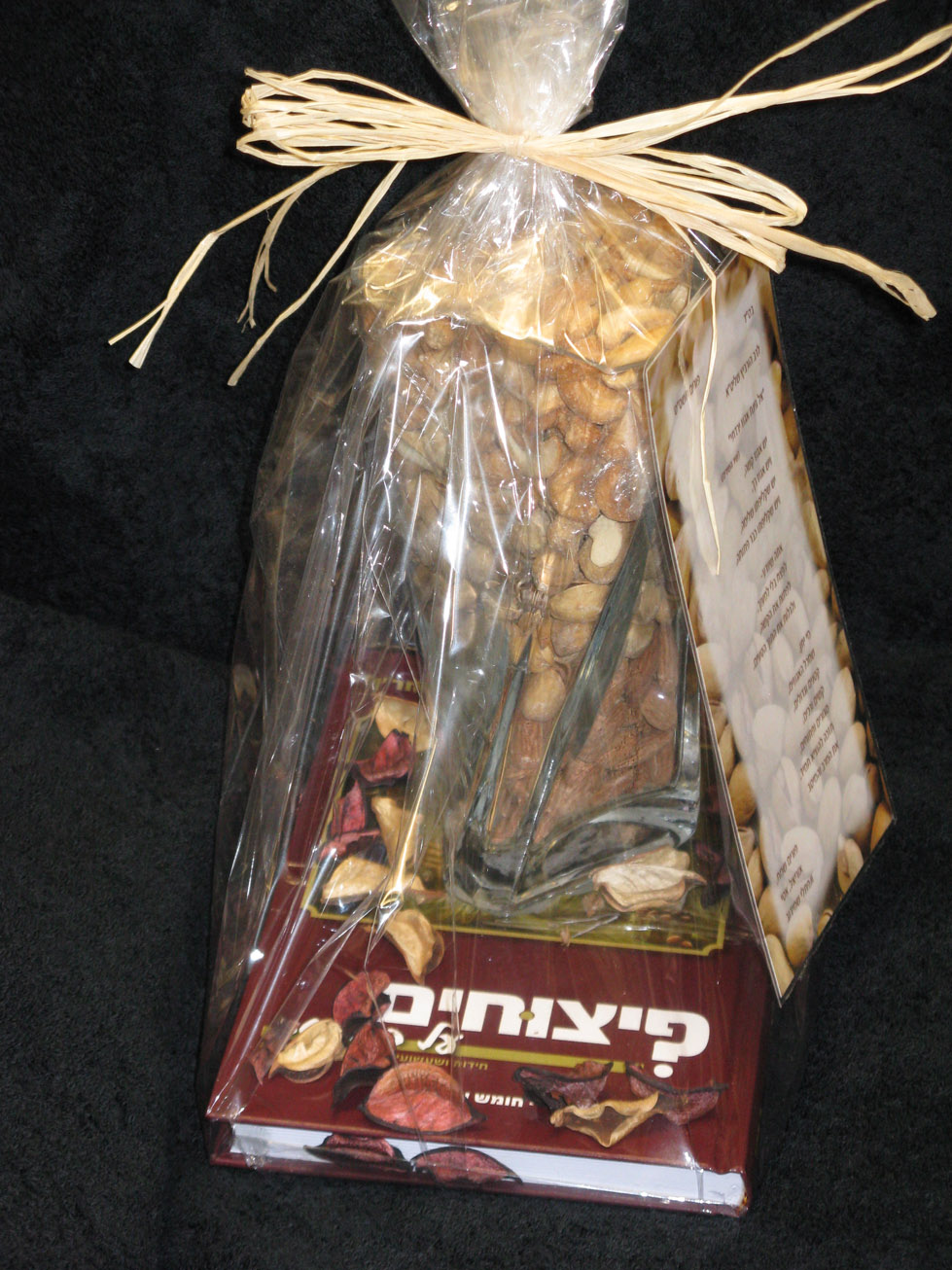 סוגרים הקופסא ומעל זה מניחים מציות או קרקרים שנראה כזה כמין שורה, אפשר לעוטפו בבד שק ולקשור ברפיה
