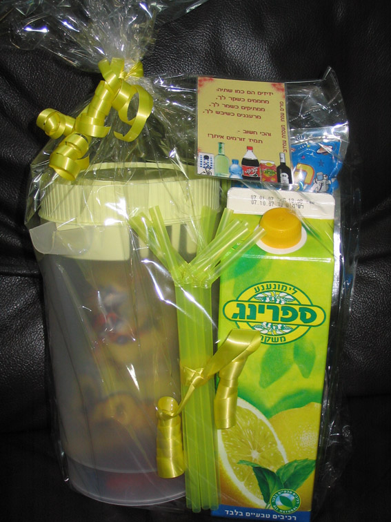 אם יש לך סבלנות לבדוק תותים - עשיתי שנה שעברה ריבת תות, עוגה חלבית עגולה יפה (וטעימה......... נורא) וליקר קפה, קניתי בששת בקבוק זכוכית קטן עם פקק שעם לליקר, וצנצנת חמודה קטנה הרמטית לריבה, לעוגה קניתי בח"פ קופסא עגולה שקופה כמו של קונדטוריה, ועל כל דבר הצמדתי תווית ממוחשבת (חבל שאין לי תמונה, כמה מילים צריך בשביל להסביר! זה כבר נשמע מסובך נורא...) כמו: ליקר קפה, 40% כוהל, וכו' -