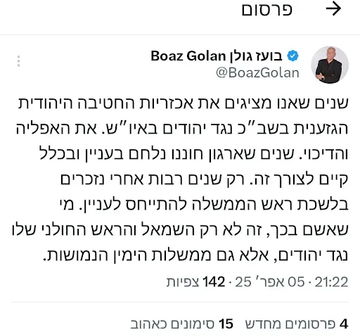 ושוב לא בהאשמה ולא בטרוניה אלא כנתון מציאותי