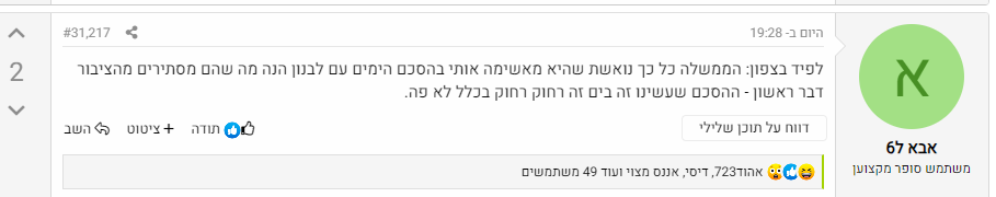 ההצבעה אנונימית, וכל אחד יכול להשפיע. הודעה שתקבל דירוג שלילי, תוסר מהאשכול.