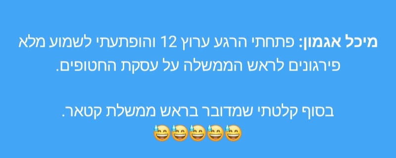 חשוב שיהיה גם מקום אחר, אווירה טובה, להתאוורר ולנשום עמוק, להביט על עם ישראל היפה, להתמקד בחדשות הטובות, פוסטים שמעלים חיוך, סרטונים ותמונות עם הומור בריא, שיעזרו לנו לעבור את התקופה. יהיה טוב!