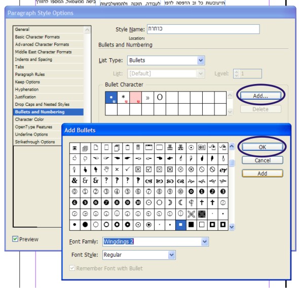 בהגדרות סגנון טקסט לפיסקה הראשונה, אתה מגדיר לו Bullets And Numbering שיש לו את הריבוע הרצוי. ואתה גם מגדיר לו, שהסגנון הבא (Next Style) שלו יהיה סגנון טקסט רגיל.