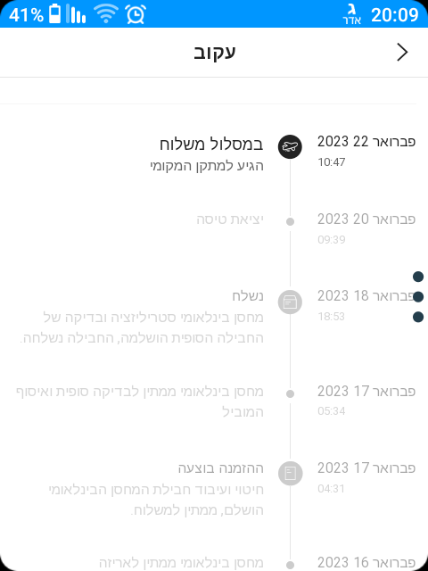 תבדקי באתר חברת המשלוחים איפה זה עומד