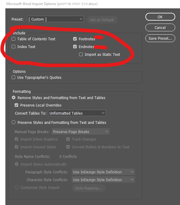 יבאתי עכשיו קובץ מוורד לאינדיזין