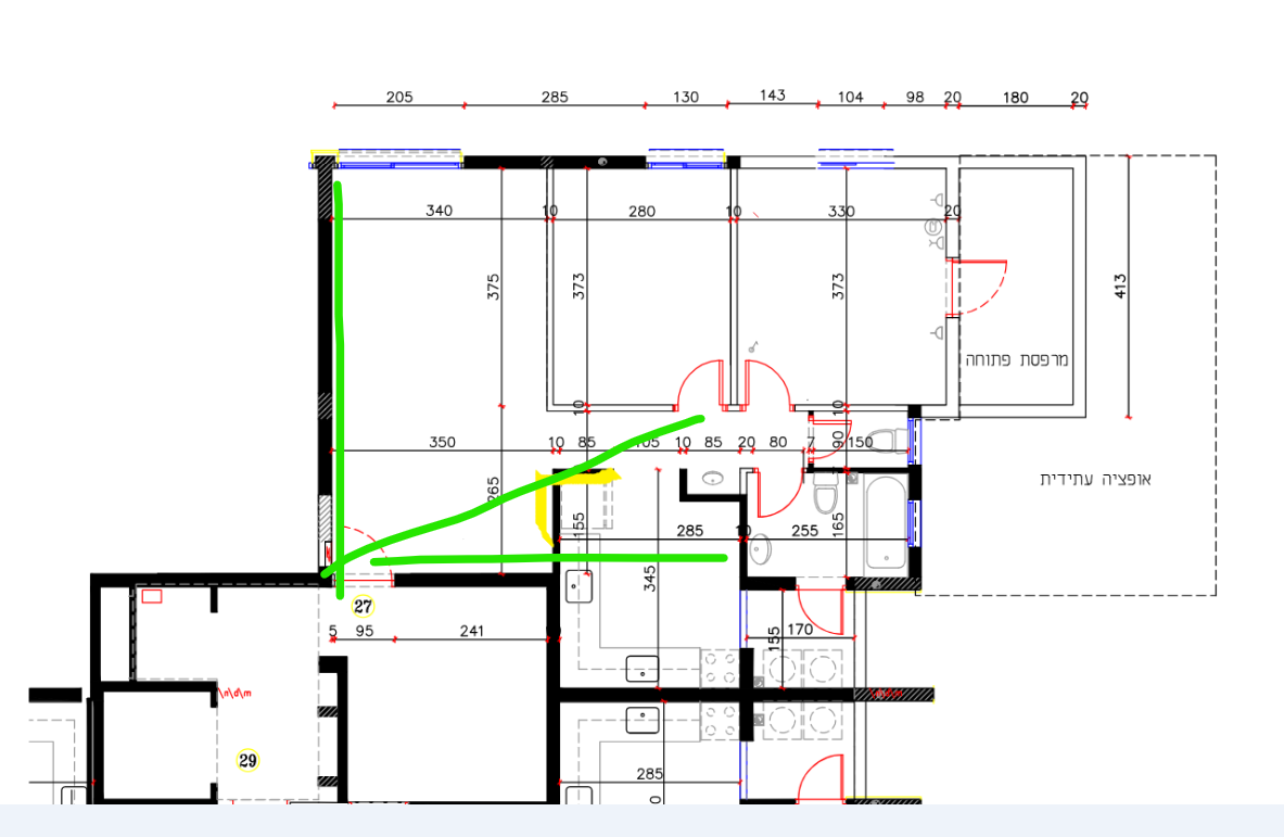 (האזור הצבוע בירוק זה הקיר ששברנו) :