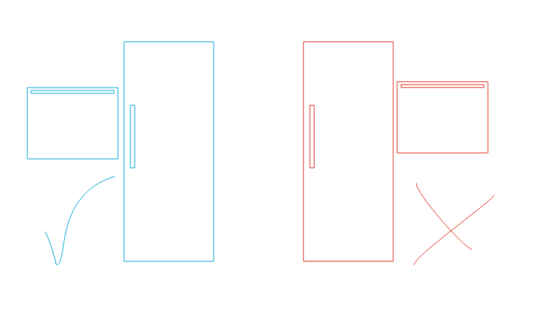 שהמקרר פתוח.לא נכון לפתוח את התנור.הדלת תנור תשרוט או תפגע בדלת המקרר.