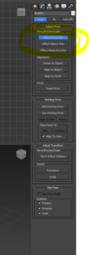 מצורף צילום מסך מוקף בעיגול צהוב EFFECT PIVOT ONLY ואז מזיזים את מערכת החיצים למקום הרצוי
