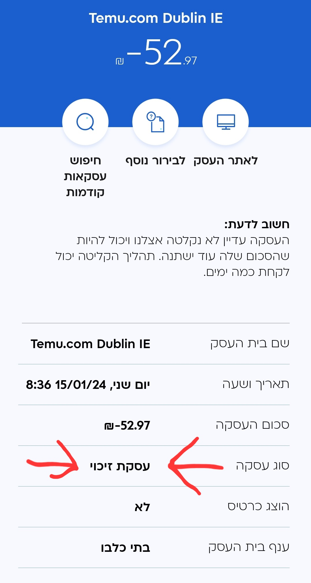 וכן , נכנס מייד לחשבון של האשראי (בדקתי)