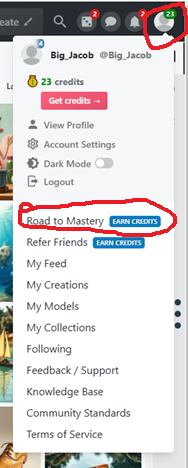 בגדול אחרי שנכנסים למסלול, 5 קרדיטים קבועים ביום (צריך לקטוף אותם דווקא באותו יום), בנוסף על כל יום בו נתת 25 לייקים על יצירות של אחרים - 5 קרדיטים נוספים, ועל כל 5 ימי יצירה רצופים עוד 25 קרדיטים (יש עוד אבל אלו הכי קלים ומהירים).