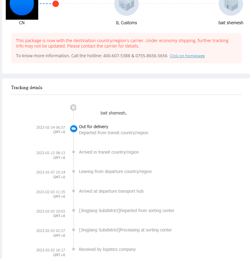 | הגנת הרכישה אוזלת, אך החבילה עדיין במעבר | לא חוקי | מידע המעקב מראה שהוא נמסר לכתובת שלך. אנא עקוב אחר זה באתר הרשמי של הלוגיסטיקה או צור קשר עם שירות חברת השילוח כדי לקבל מידע נוסף, כמו כן, תוכל לאשר עם בני המשפחה או השכנים שלך אם הם חתמו על החבילה על שמך. אם לא קיבלת, אנו מציעים לך לספק מסמך רשמי מסניף הדואר או מחברת המשלוח כדי להוכיח שלא קיבלת את החבילה. |