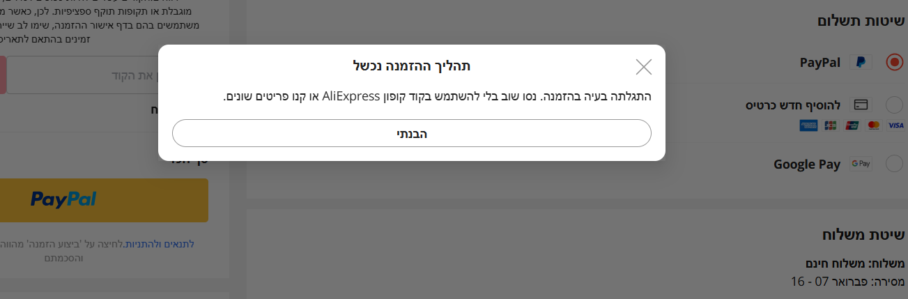 תקלה בהגדרת כתובת למשלוח - מישהו נתקל בבעיה כזו בעלי אקספרס?