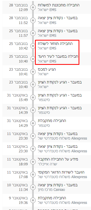 שם מופיע שהחבילה מוחזרת , אך לא הבנתי למה.