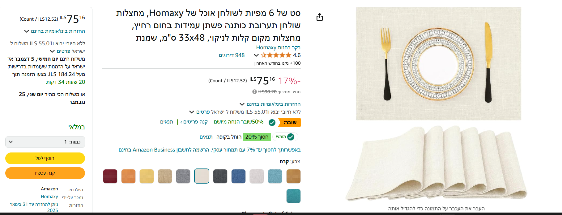 סט מצעים זוגיים 75 ש"ח, לאחר סימון קופון 50% ונכלל במשלוח חינם