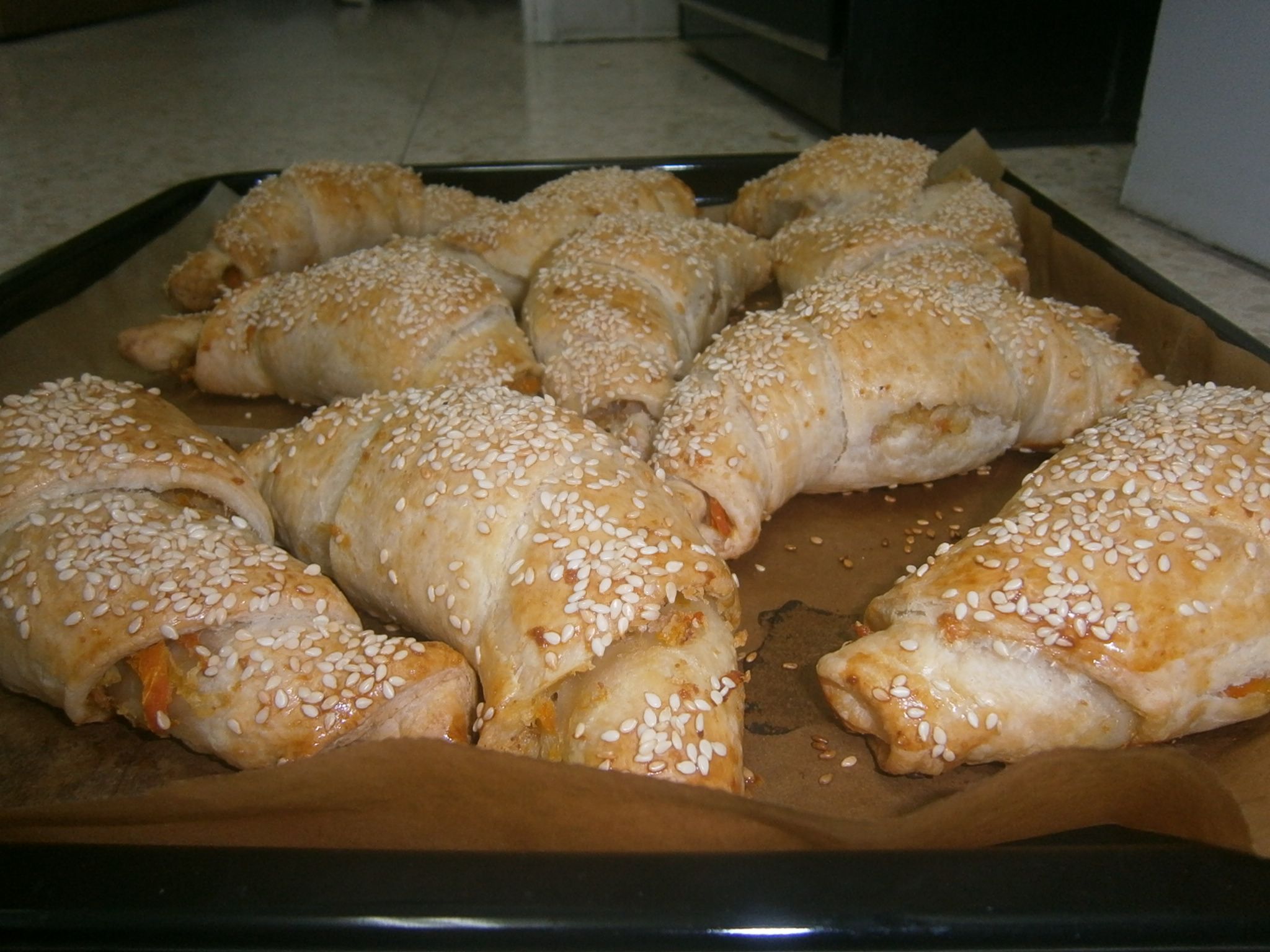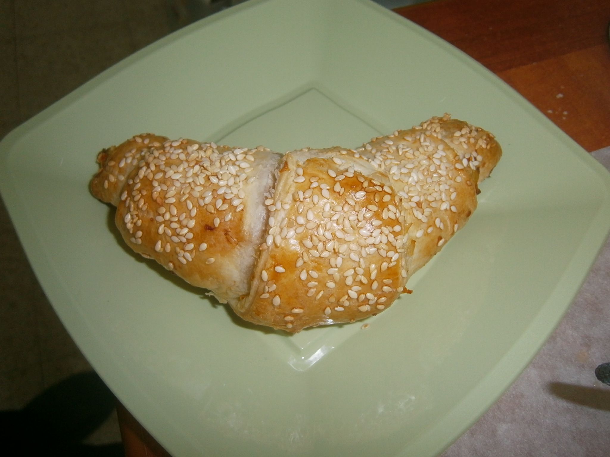 למנת פתיחה הכנתי קרואוסון ממולא בירקות מאודים.