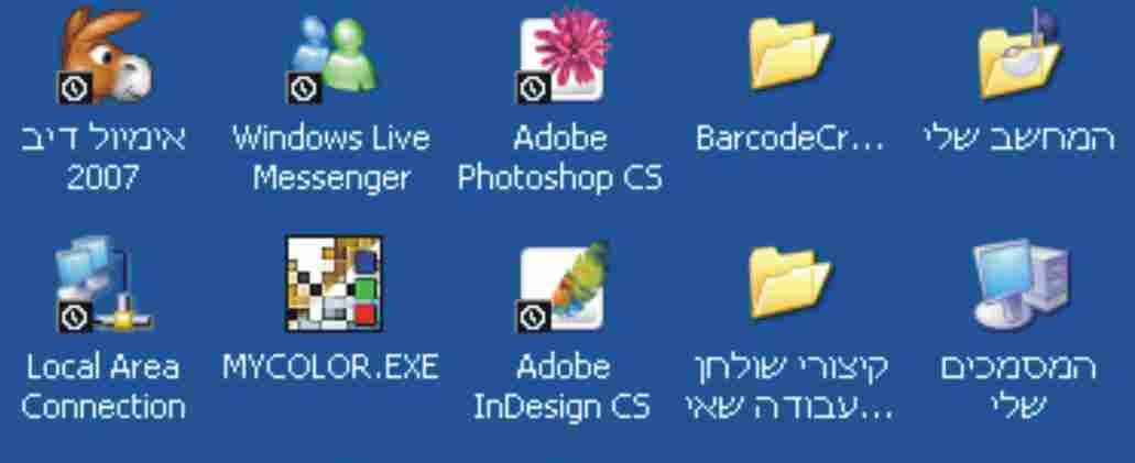 כל האייקונים בשולחן העבודה התחלפו, ובחלק מהאיקונים נוסף ריבוע שחור ועליו בצורת שעון.