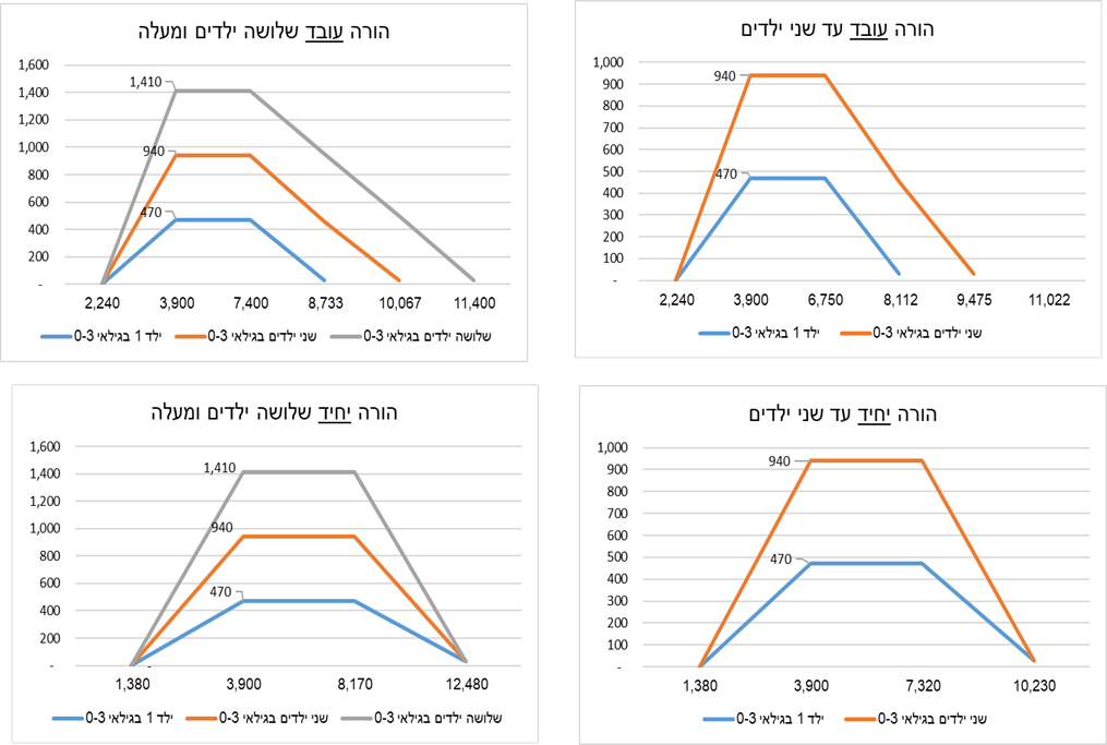 גובה הכנסה חודשיתמענק עבור ילד אחד בגילאי 0-3גובה הכנסה חודשיתמענק עבור 2 ילדים בגילאי 0-3גובה הכנסה חודשיתמענק עבור 3 ילדים בגילאי 0-3