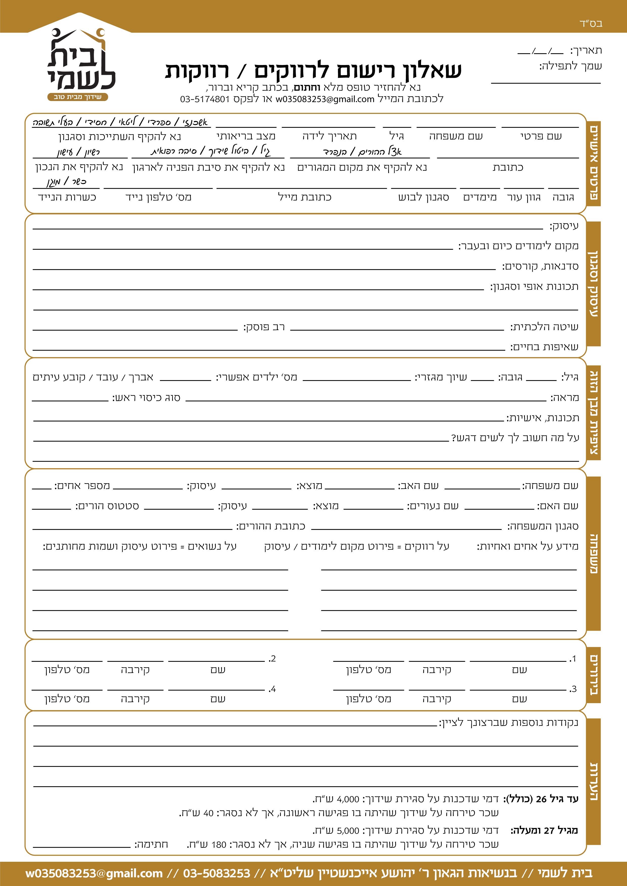להלן הטופס לכל מי שמעוניין, יש לשלוח הטופס במייל,