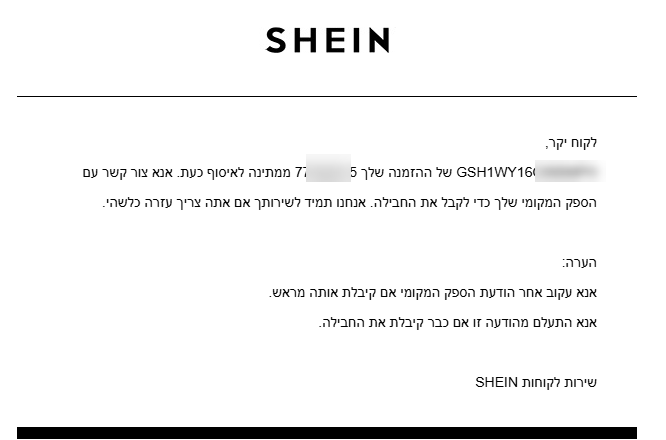 דרוש מידע שיין- משלוח
