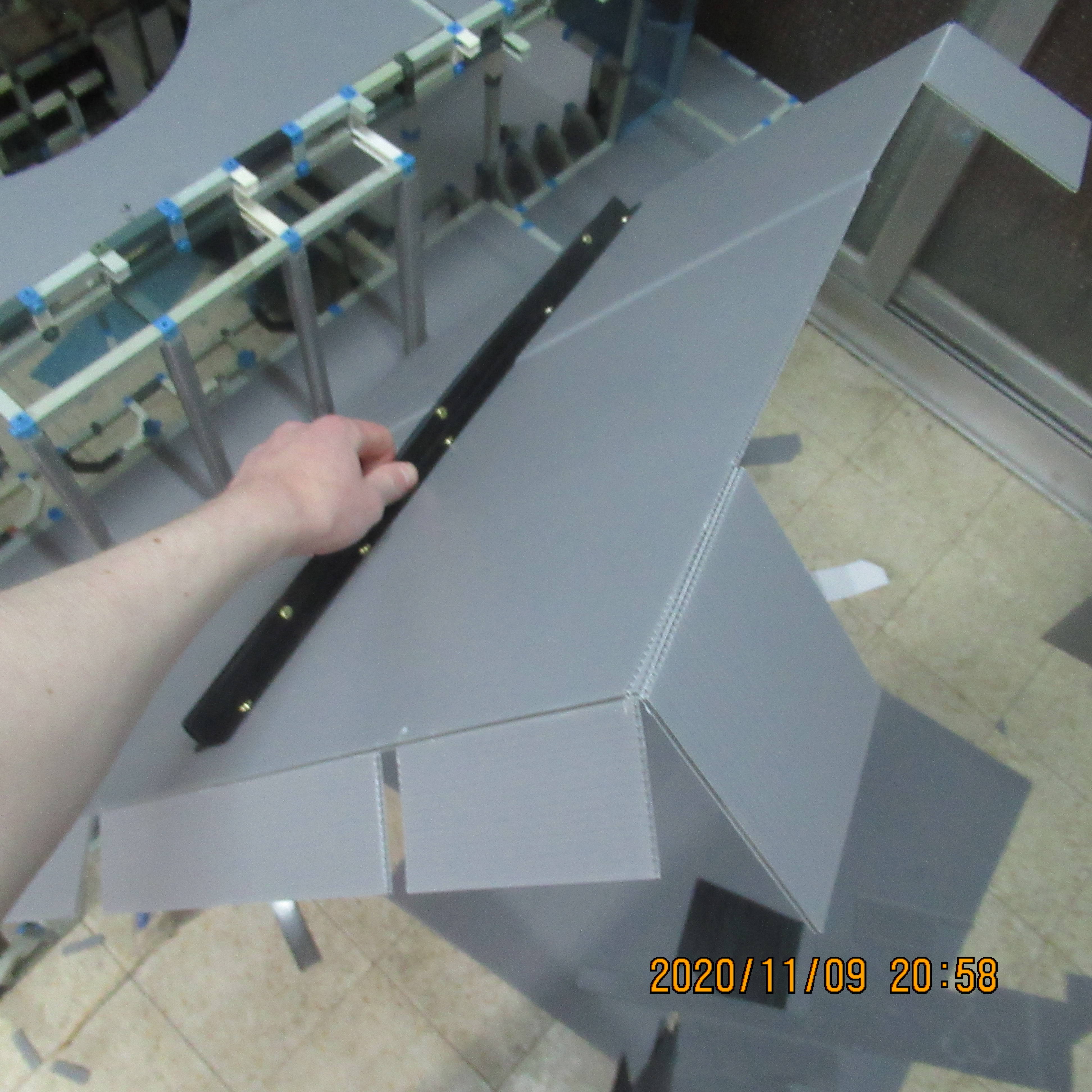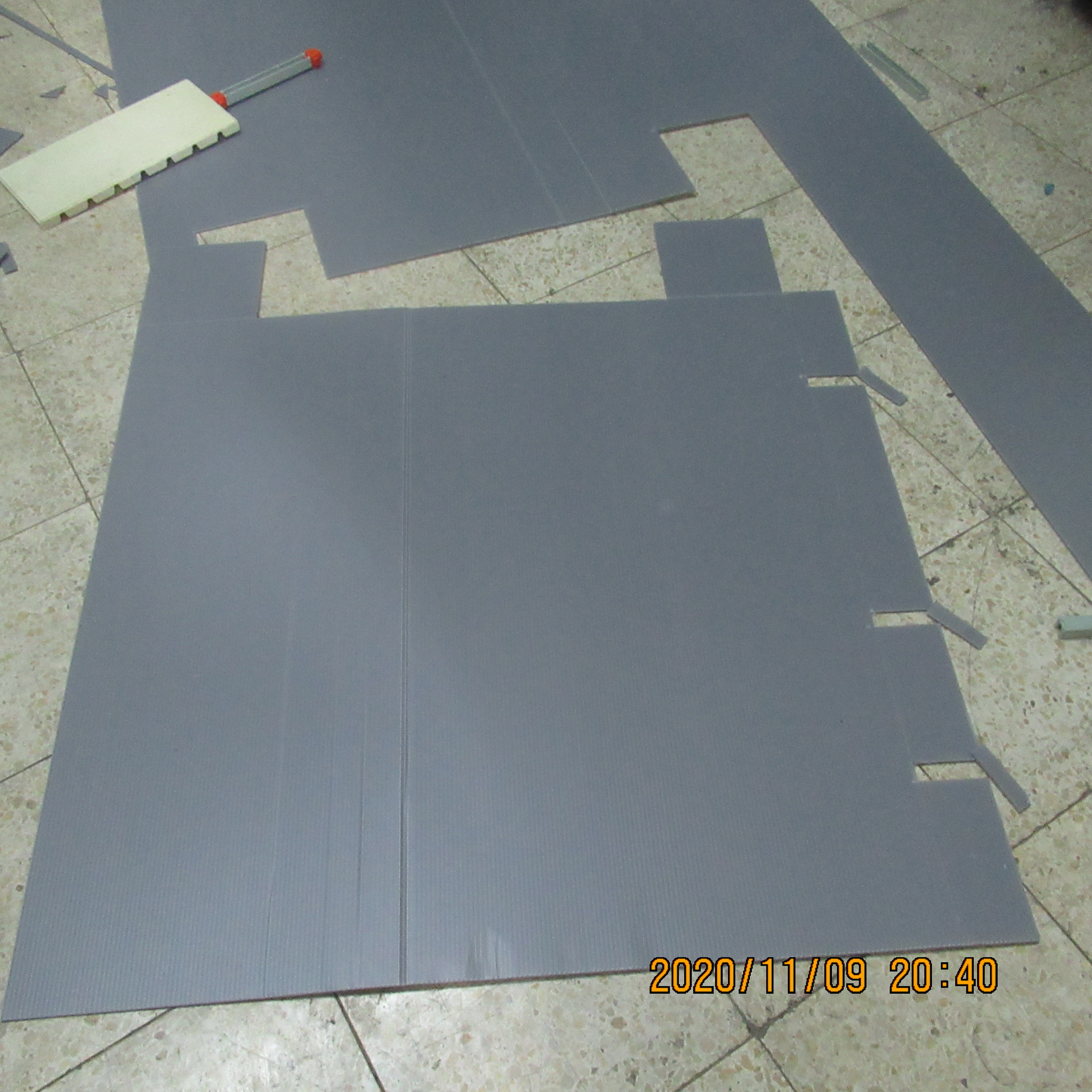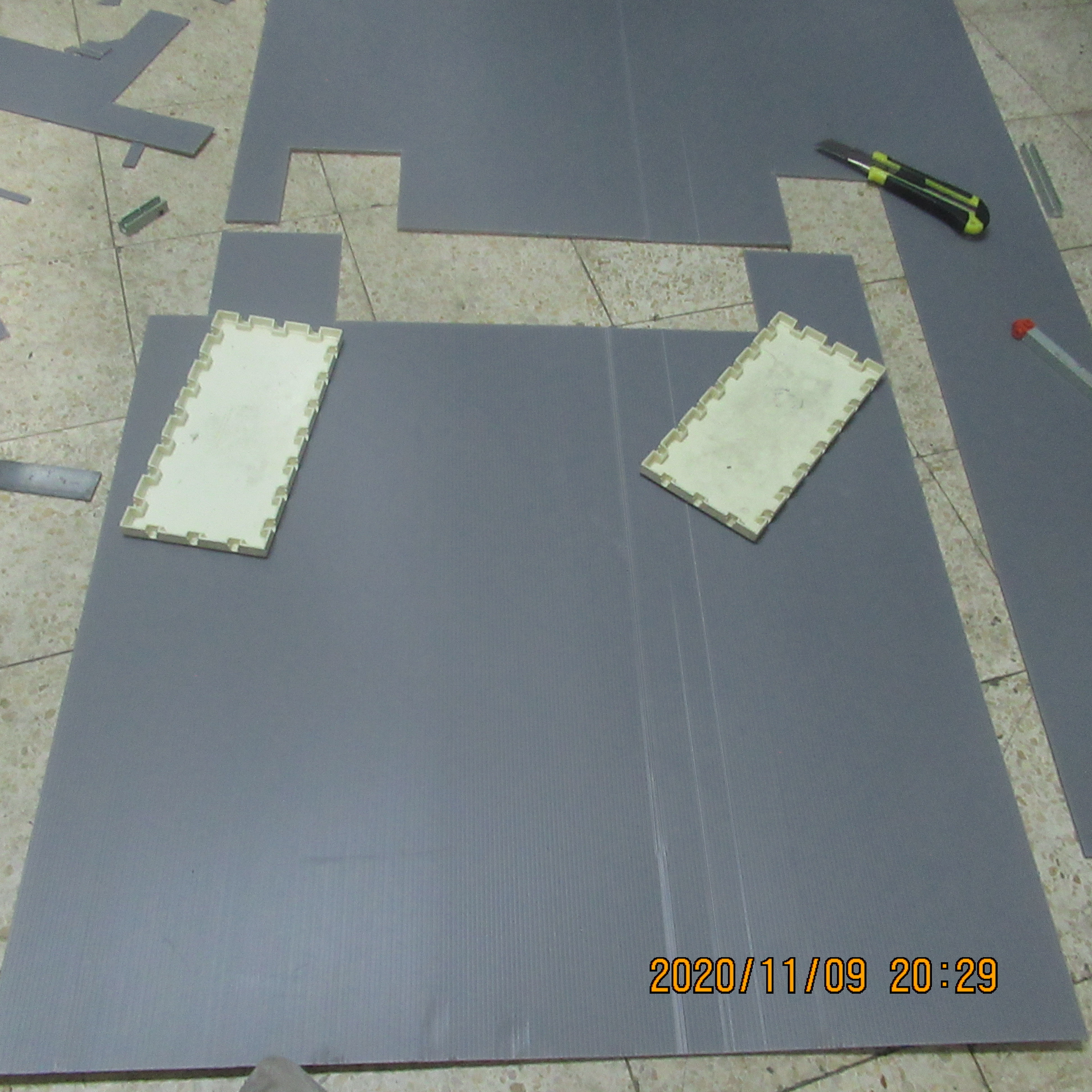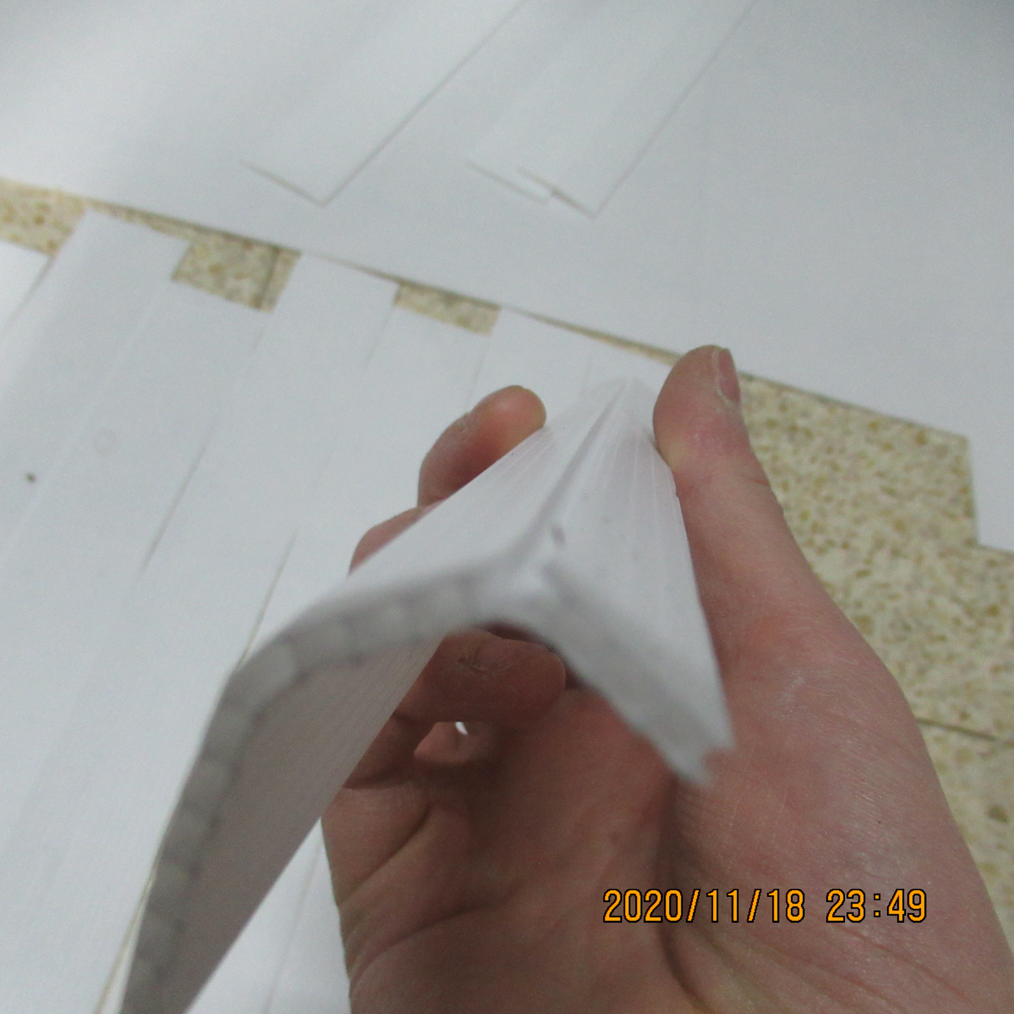 וגם העיבוי לגג בחור העגול במרכז התחנה נעשה מרצועת פוליגל באורך כ125-130 ס"מ שנחתך בחיתוך חלקי (לא עד לצד השני) בערך כל 3 ס"מ ומזה נוצר עיגול ארוך.