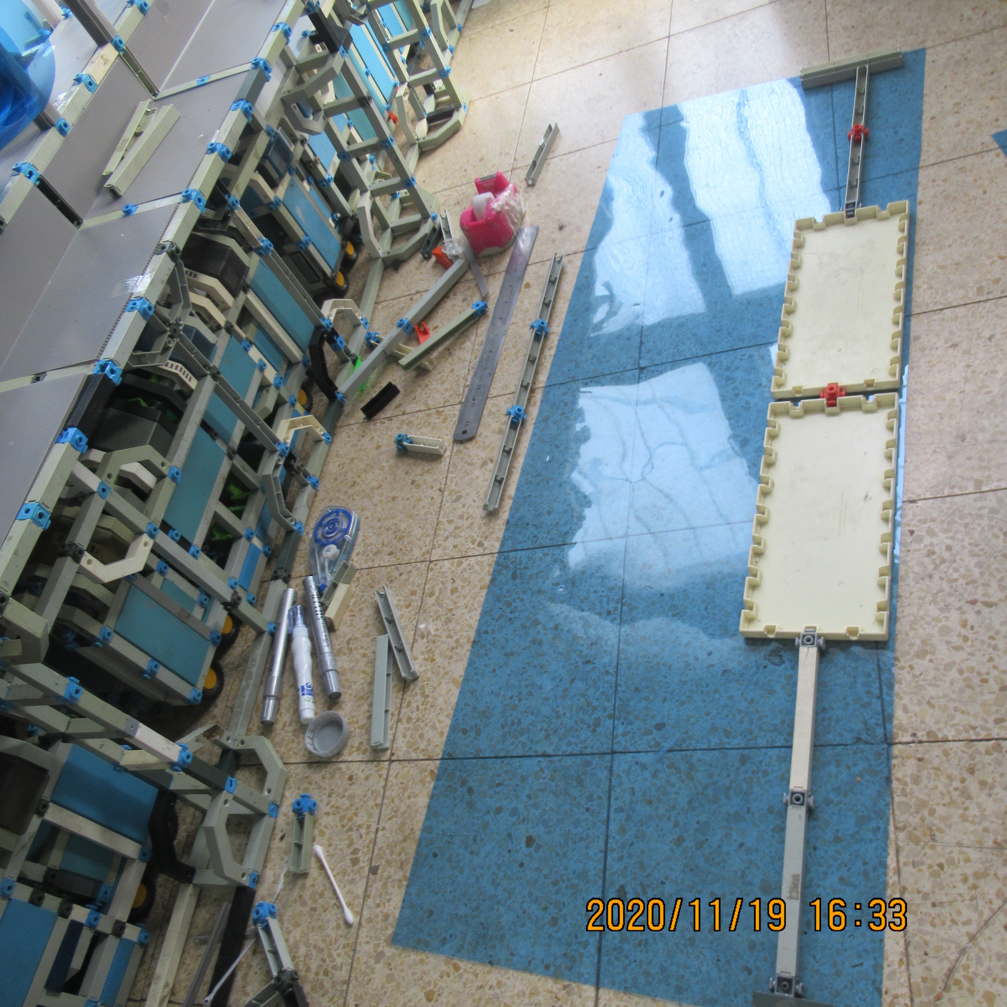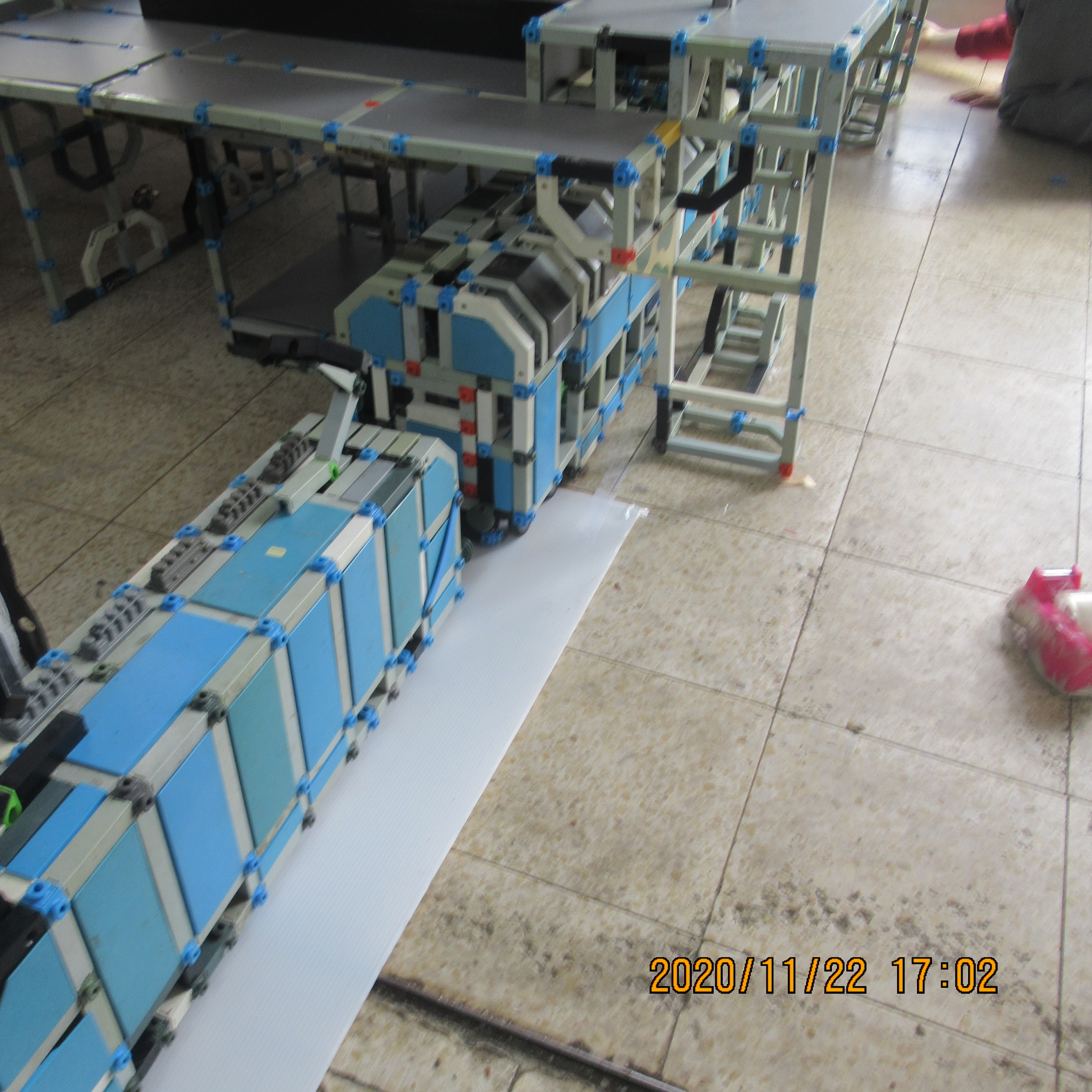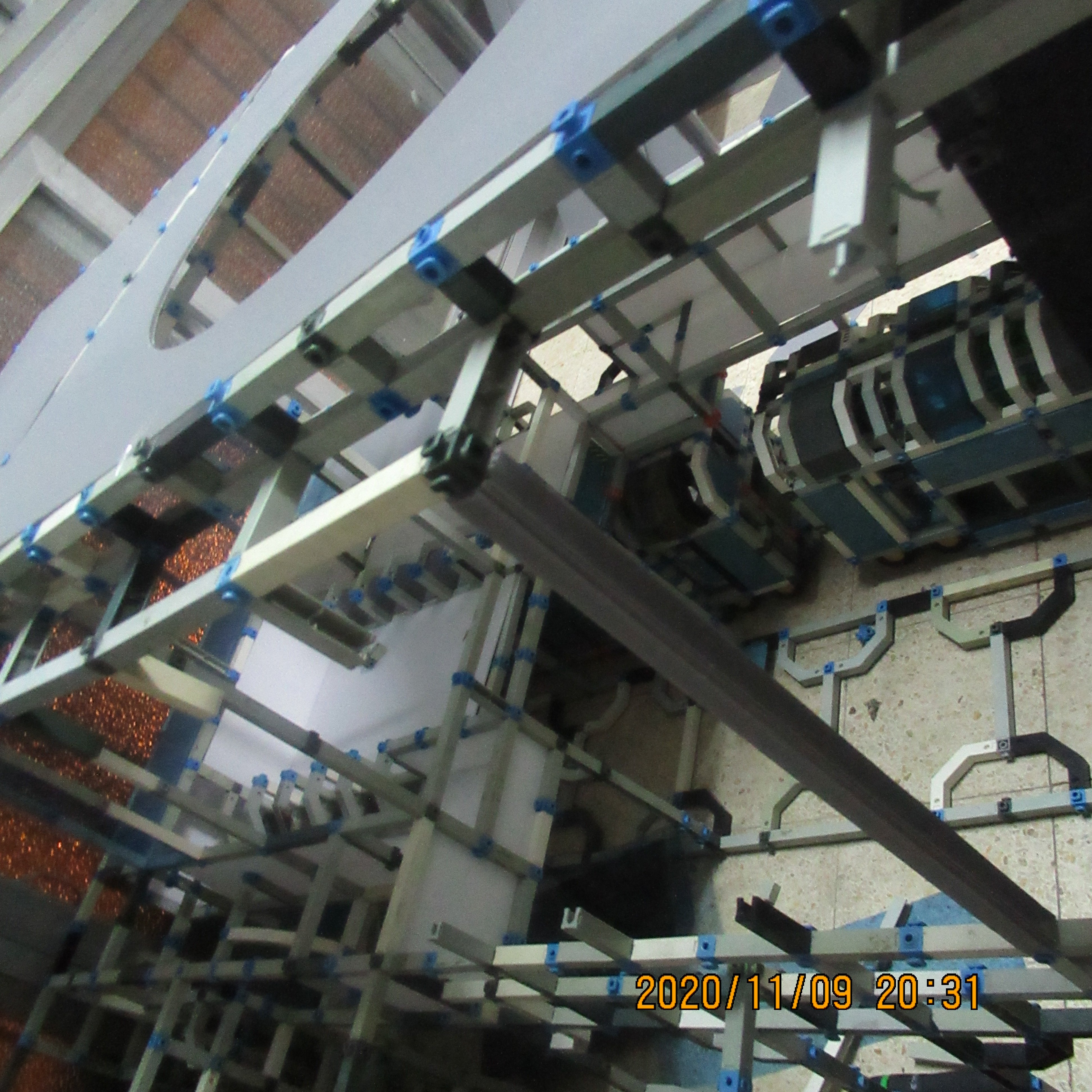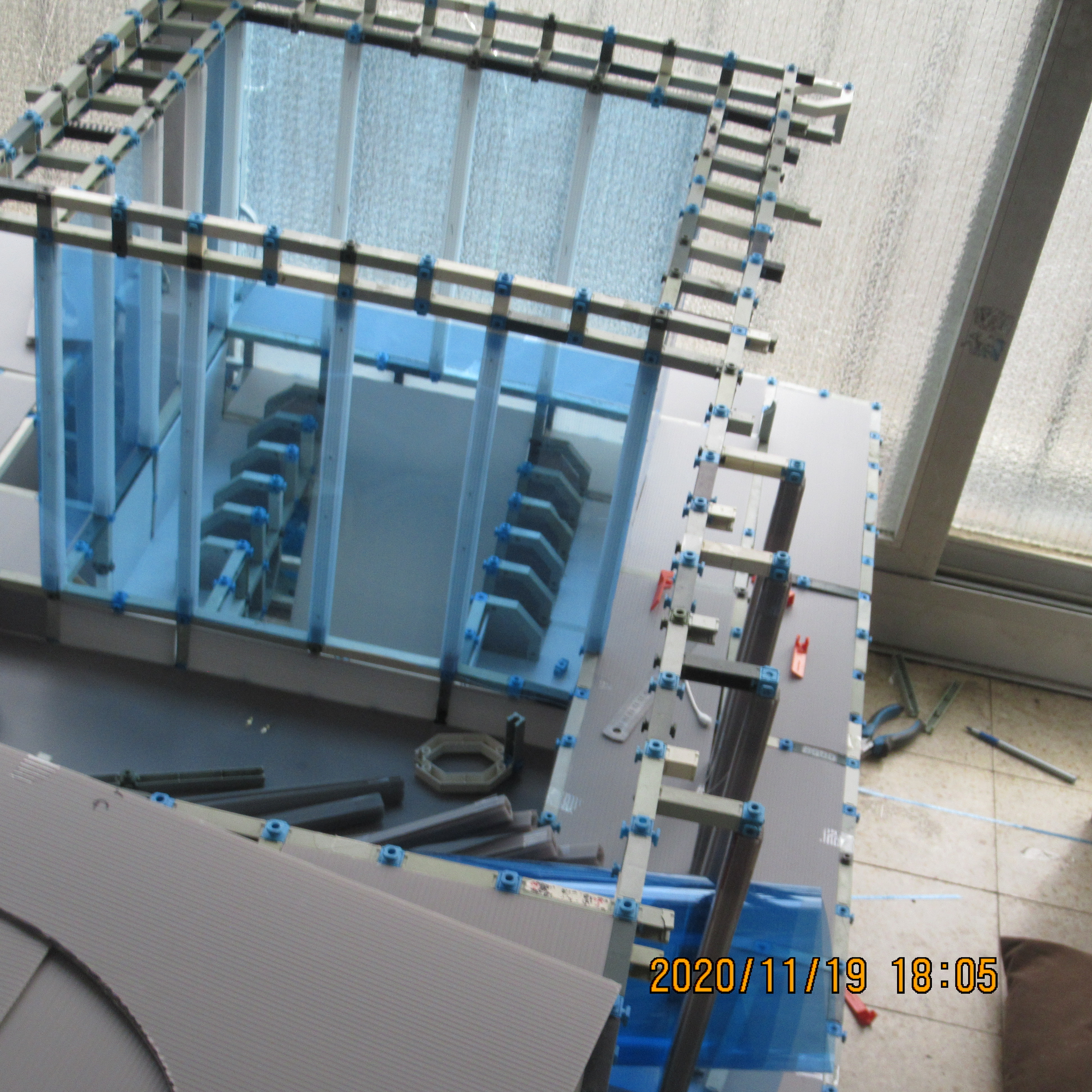 גם המדרגות נעות עשויות מפוליגל 100% עם חיבורים ע"י סיכות משרדיות והמדידות היו לפי התחנה עם סרגל רגיל וחישוב הזווית עם חלקי מגנטים של "פליימאגס" .