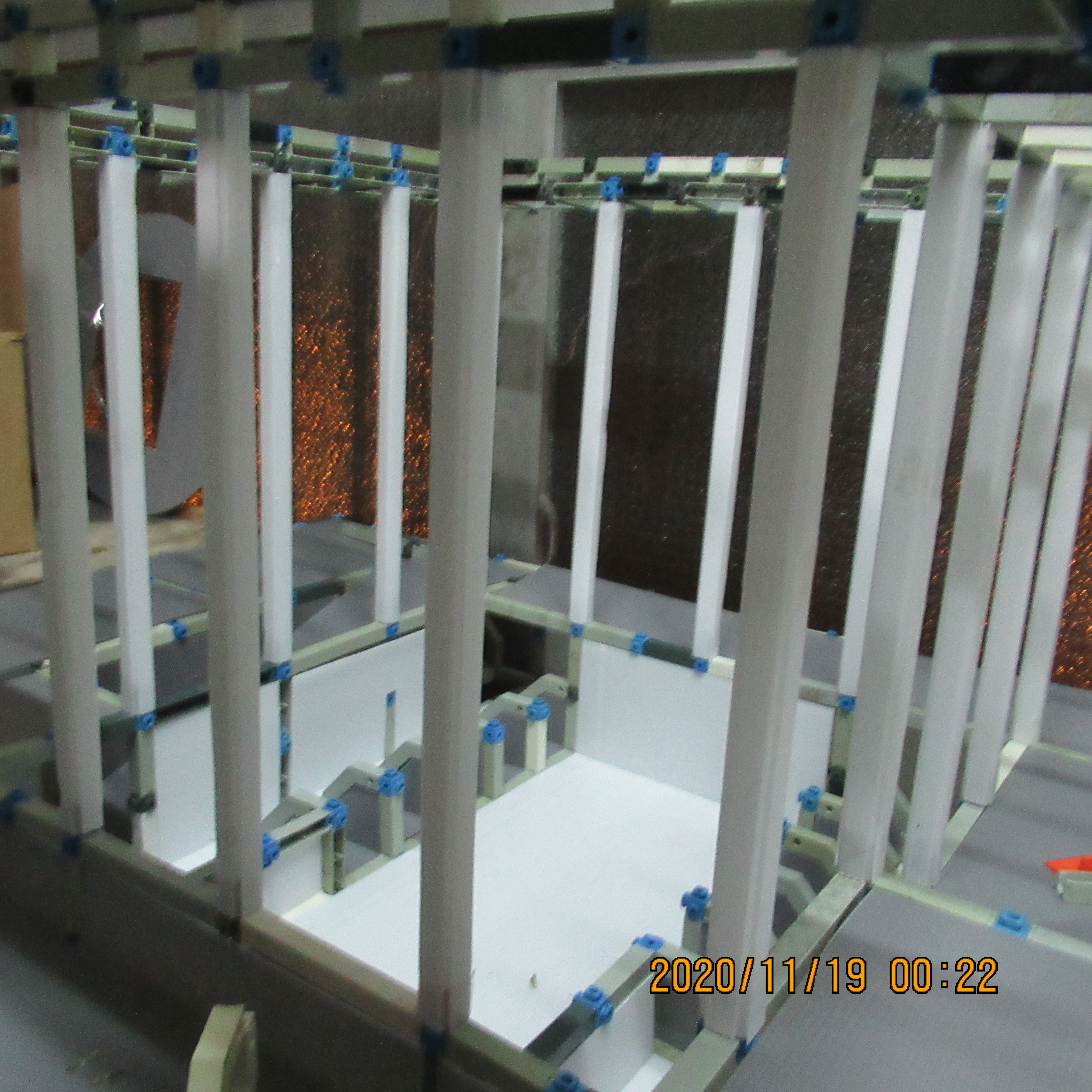 המודל אינו מלגו ,עשוי בעיקר משלדה ממשחק הרכבה ישן שנמכר בארה"ב לפני עשרים שנה (החלקים ברובם מאבא שלי)ומלוחות פוליגל -הרציף, הגג, הקירות והרצפה ,ויש בזה גם סיכות משרדיות, וסיכות מתפצלות, ושקף כחול, וחוט דנטלי, וקיסמי שיניים וצבעי אקריליק ולורדים ליצירה.