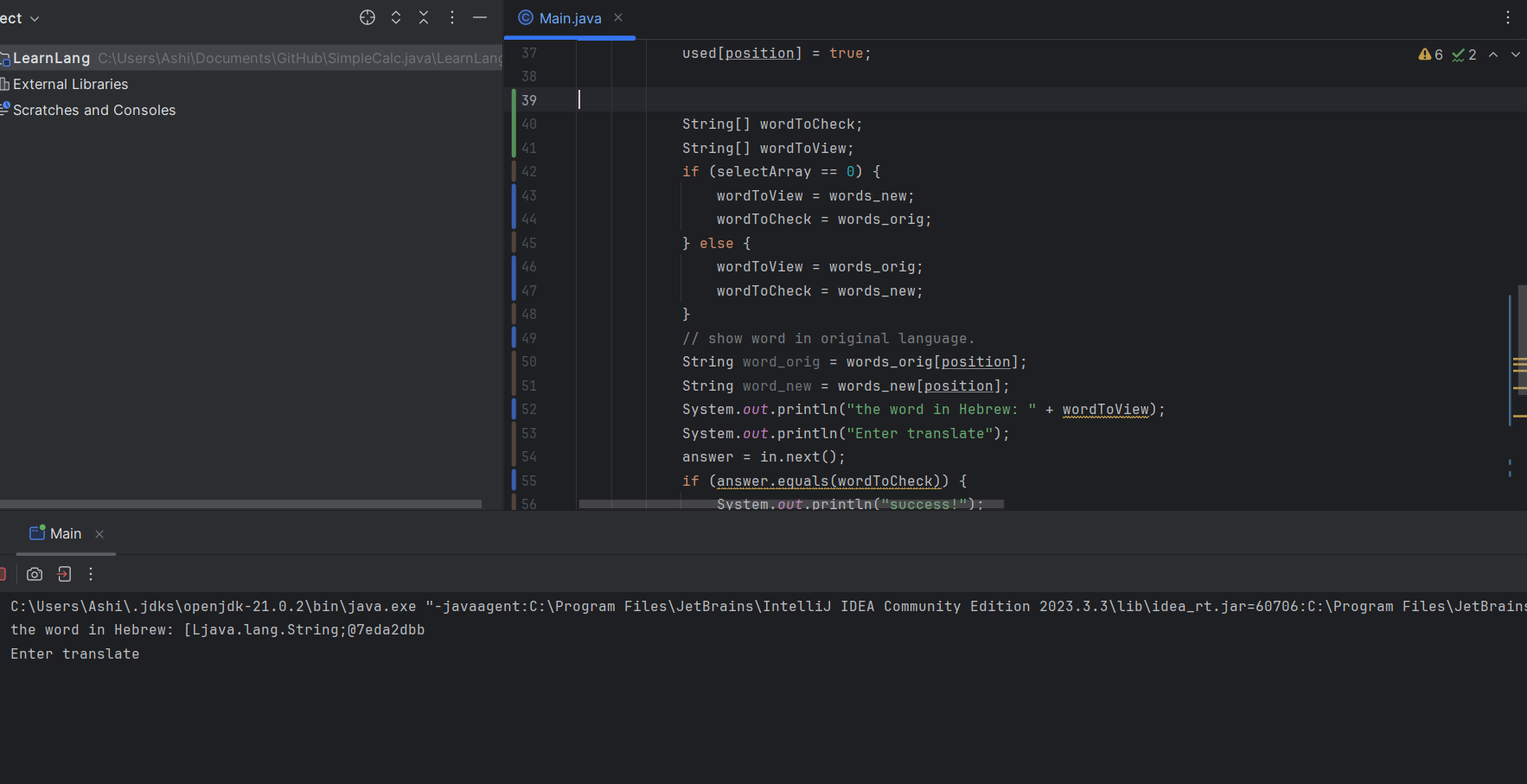 הוא רוצה שכל פעם יוגרל מערך שממנו תוצג מילה, ויצטרכו לתרגם למילה מהמערך השני.