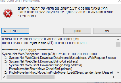 System.Net.WebException: השרת המרוחק החזיר שגיאה: (403) אסור.