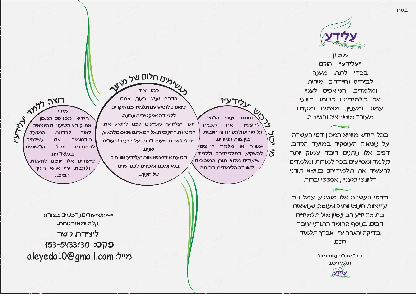למי שרוצה העליתי גם החודש את הקטלוג של עלידע, בהצלחה לכולנו!