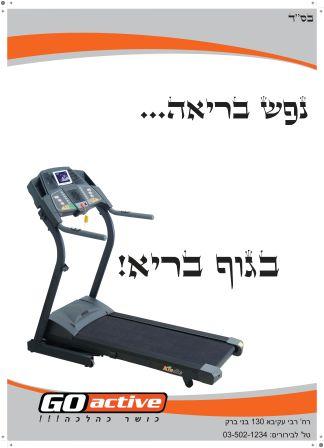 התבקשנו בקורס לעצב פוסטר 70*50 לרשת מועדוני כושר הנקראת GO ACTIVE (אכן יש רשת כזו במציאות אבל לעניין העבודה ומה שהיא מציגה אין דבר כזה) אשמח לשמוע הערות והארות גם על העיצוב וגם על הסולגן, לפני שאני מדפיס את העבודה להגשה.