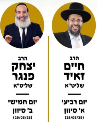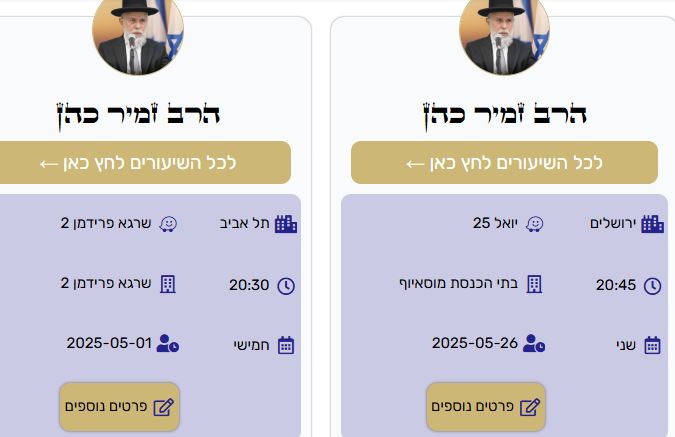 שיעורים ברחבי הארץ להיום יום רביעי א' סיוון!