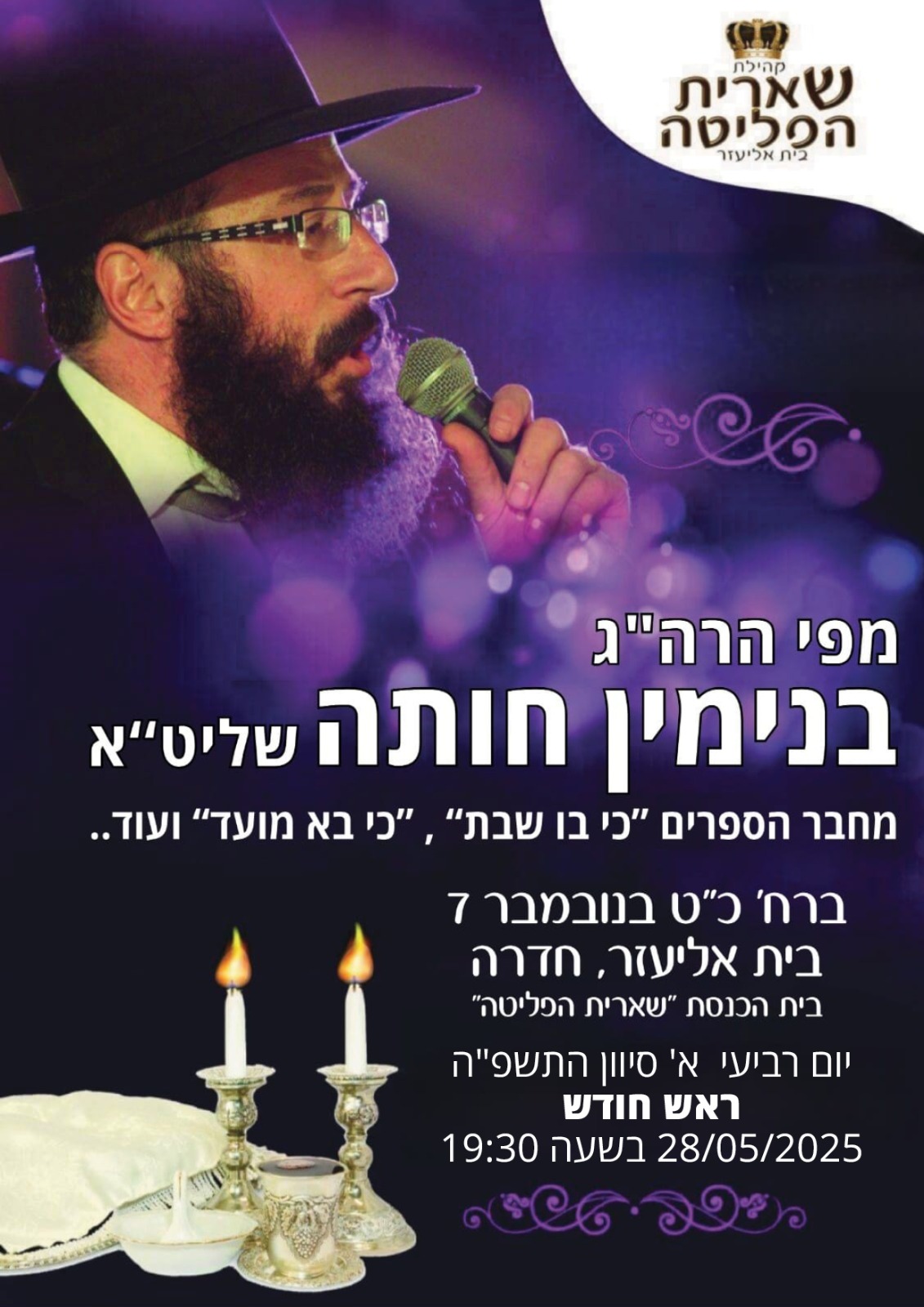 הרב אליהו אלמליחדף היומיביהכנ”ס “משכן כהנים”, עירית 6, עפולהא ג ה ו ש8:00:00 PM