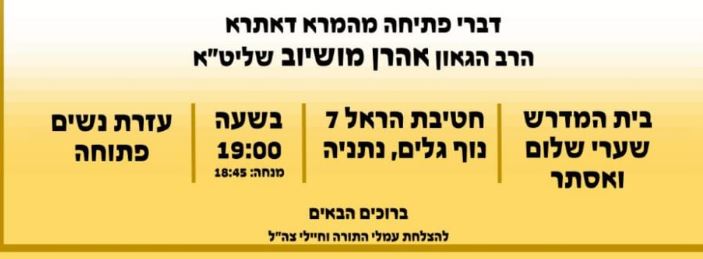 הרב אריה לוריהדף והלכה יומיתמרכז “נופי שרון” פתח תקווה 7 נתניהא ב ג ד ה ז21:00:00