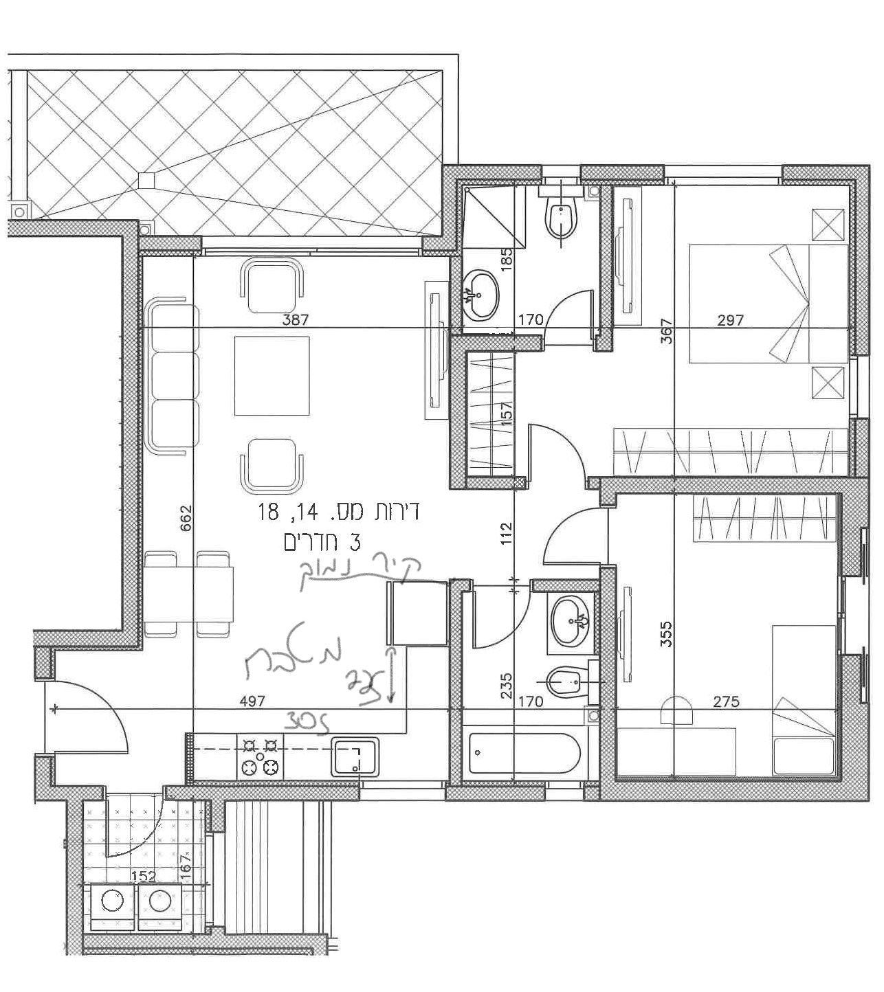 לגמרי. וגם נראה לי חלוקת שטחים לא נכונה שתי חדרי רחצה בכזה גדל דירה (כלומר 2 חדרי רחצה זה חשוב, אבל במקרה פה זה על חשבון צרכים חשובים יותר) תשקלו לוותר על יחידת הורים ולהגדיל למטבח יפה (הכתנית פה מתעלמת מקירות הדף לממד אז זה אפשרי לביצוע רק אחרי טופס 4, אבל זה רק כוון אחד בשלוף, מן הסתם אפשר גם לחשוב על רעיונות בלי פגיעה בקירות אלו)