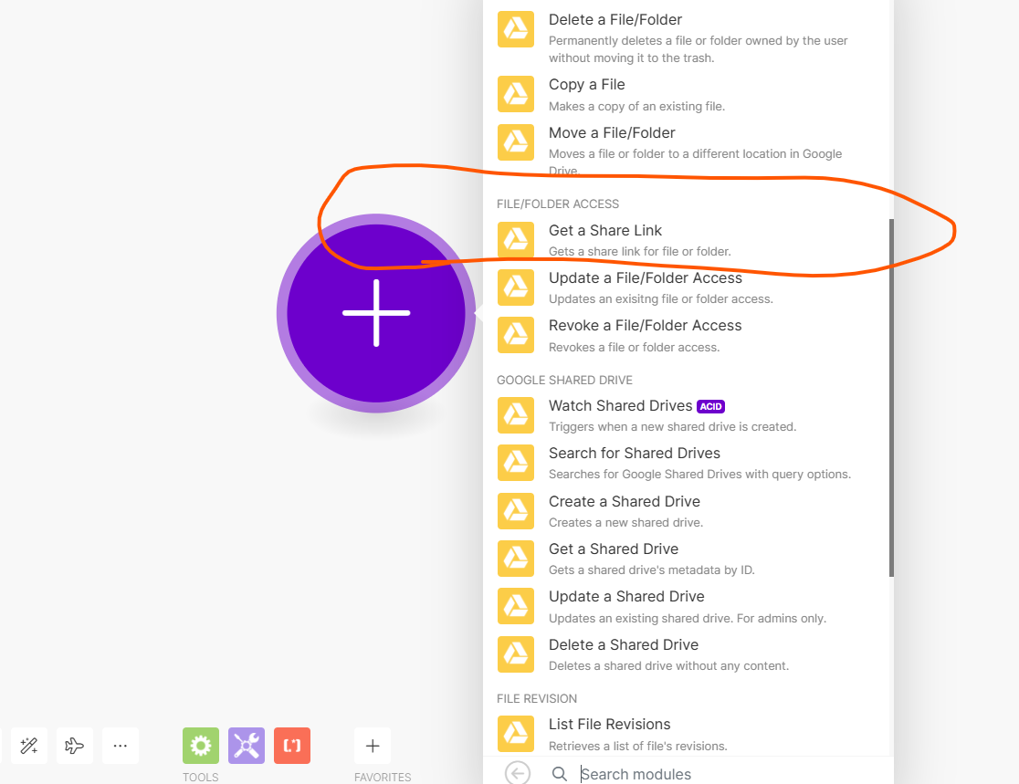 ואז מודול של דרייב אקשן של שיתוף קובץ