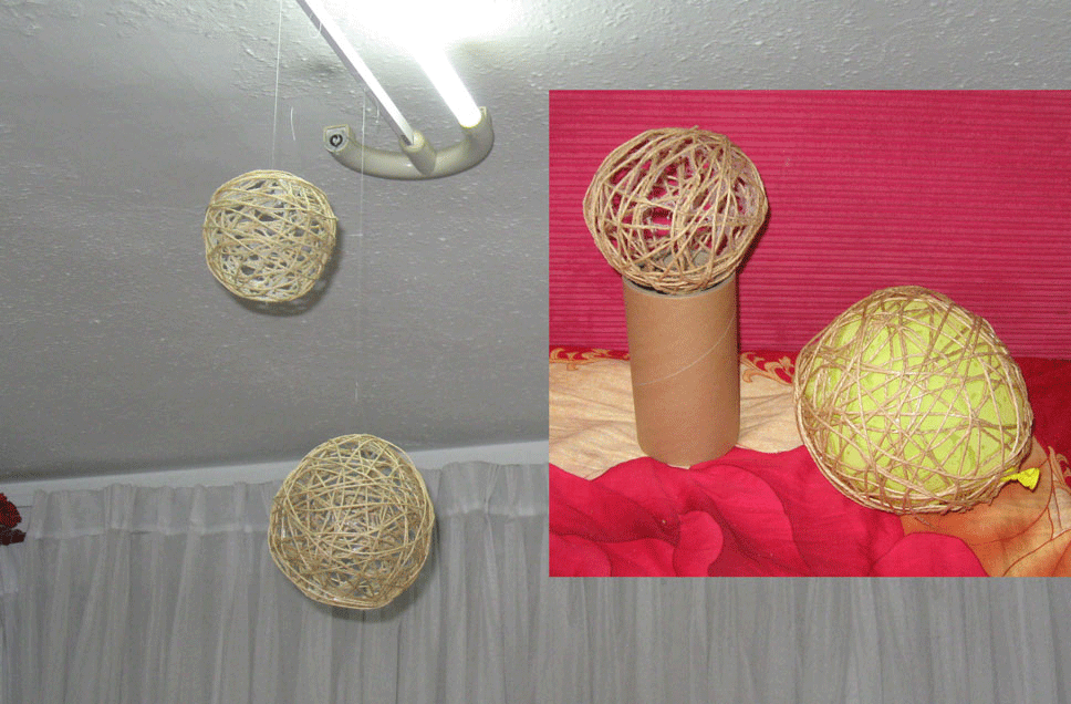 שימו לב לעשות את זה עם בלונים איכותיים. אני עשיתי את בחופש עם הילדים (עם חוטי צמר), ובזמן ששמנו לייבוש, הבלונים הזולים שקניתי התחילו להתכווצ'ץ וכיווצו יחד איתם את היצירה כולה:( הילדים היו ממש מאוכזבים מהתוצאה...