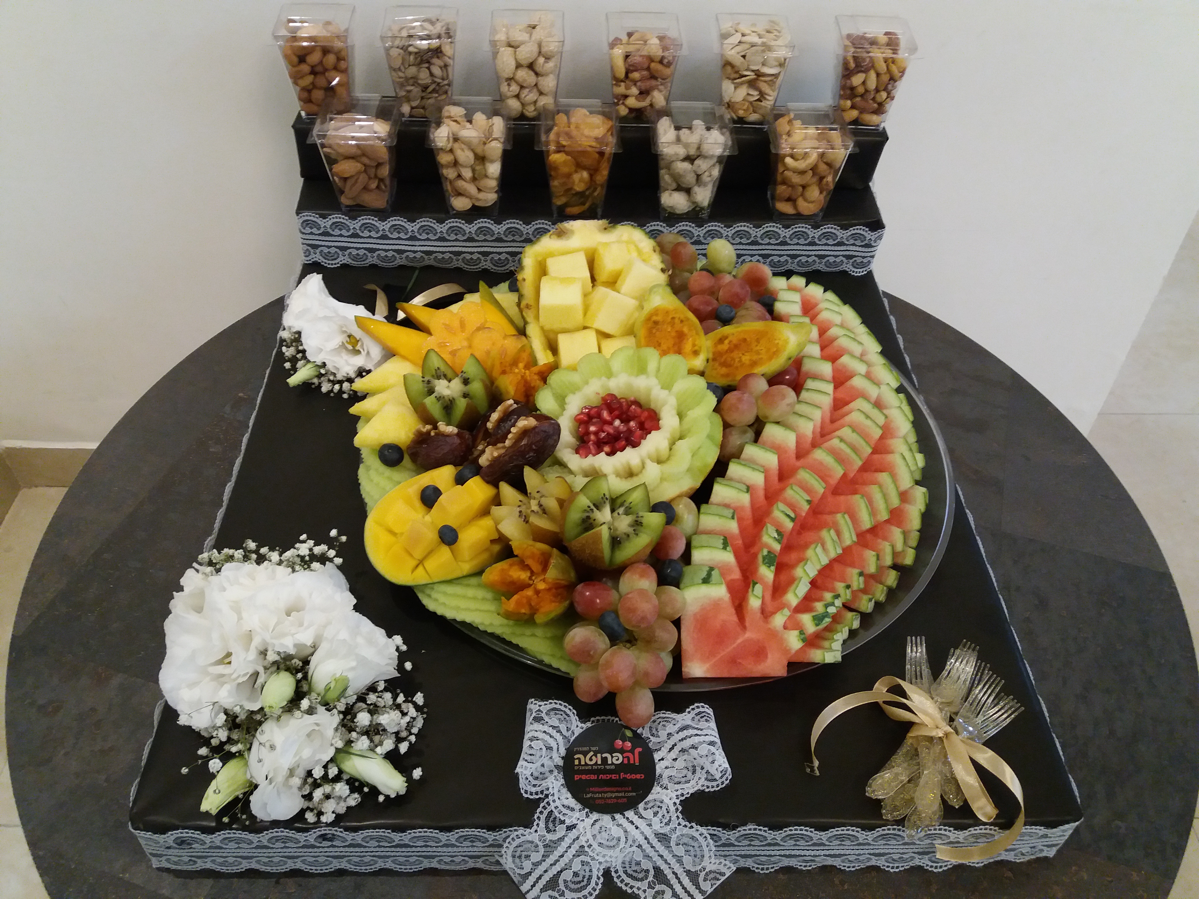 שלום משתפת בסידור פירות ופיצוחים בשילוב פרחים...