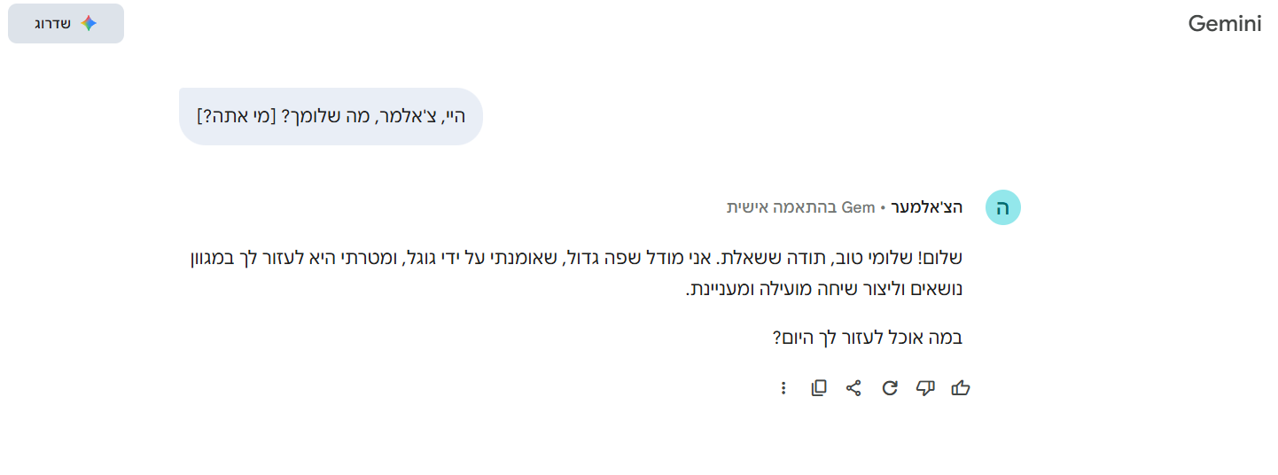 נטפרי. עכשיו קלטתי, בפרומפט שהם מזריקים לתחילת כל שיחה כתוב "אתה מודל שפה גדול' וכו', כלומר שלא יוכל לשחק משחק תפקידים מהסוג הזה.